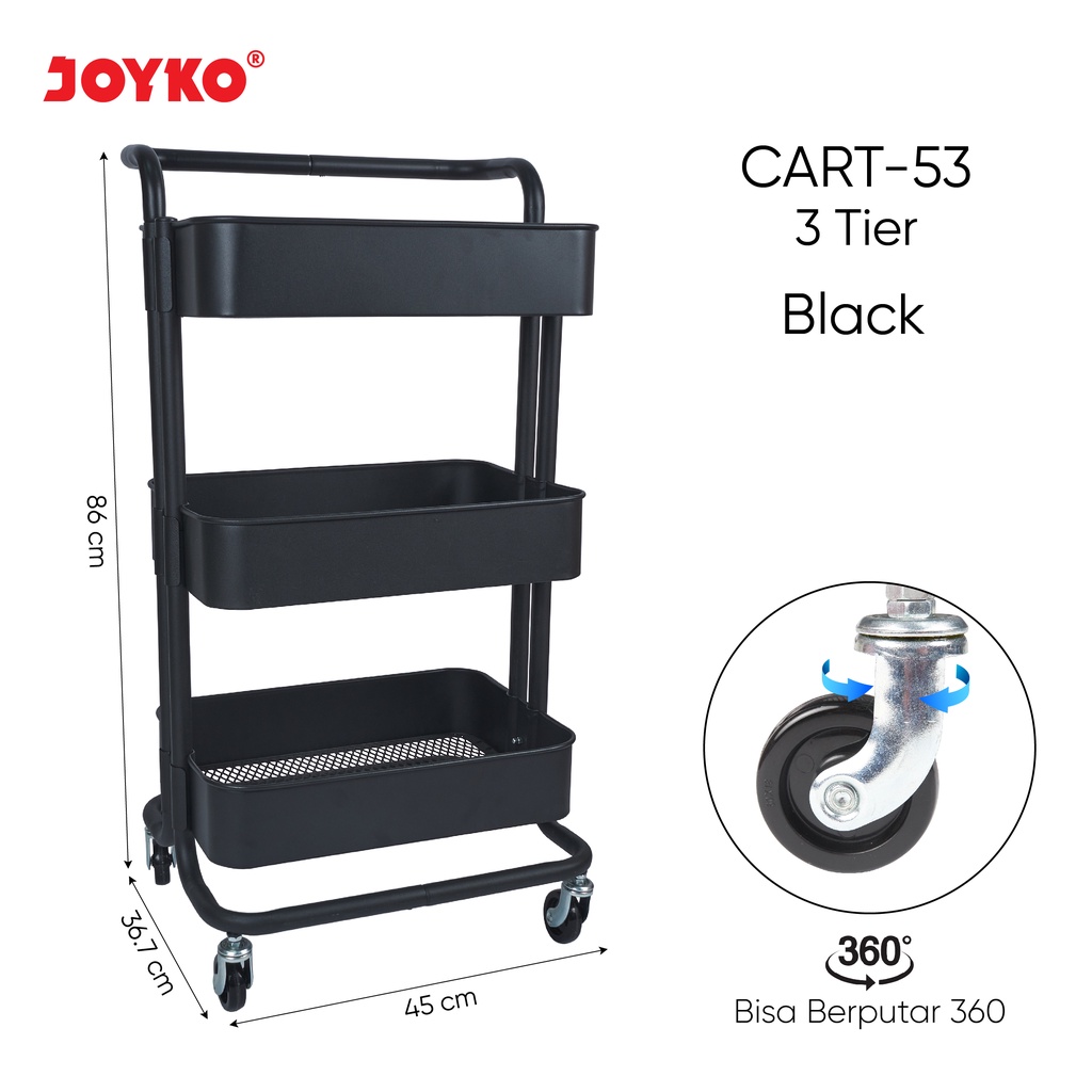 Rak 3 Susun Roda Troli Penyimpanan Rolling Storage Cart 3 Tier Joyko CART-53