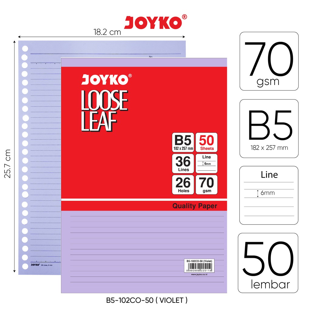 Loose Leaf Color Isi Kertas File Binder Warna Joyko B5