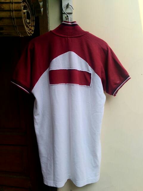 Kaos Berkerah Kombinasi Warna Putih Merah Hitam