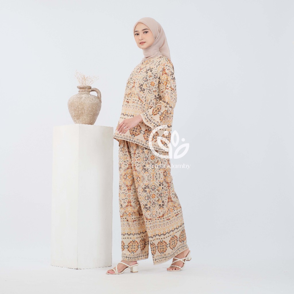 One Set Melinda Rayon Premium Busui Setelan Wanita Atasan Bawahan Celana Panjang Batik Adem Nyaman Tebal