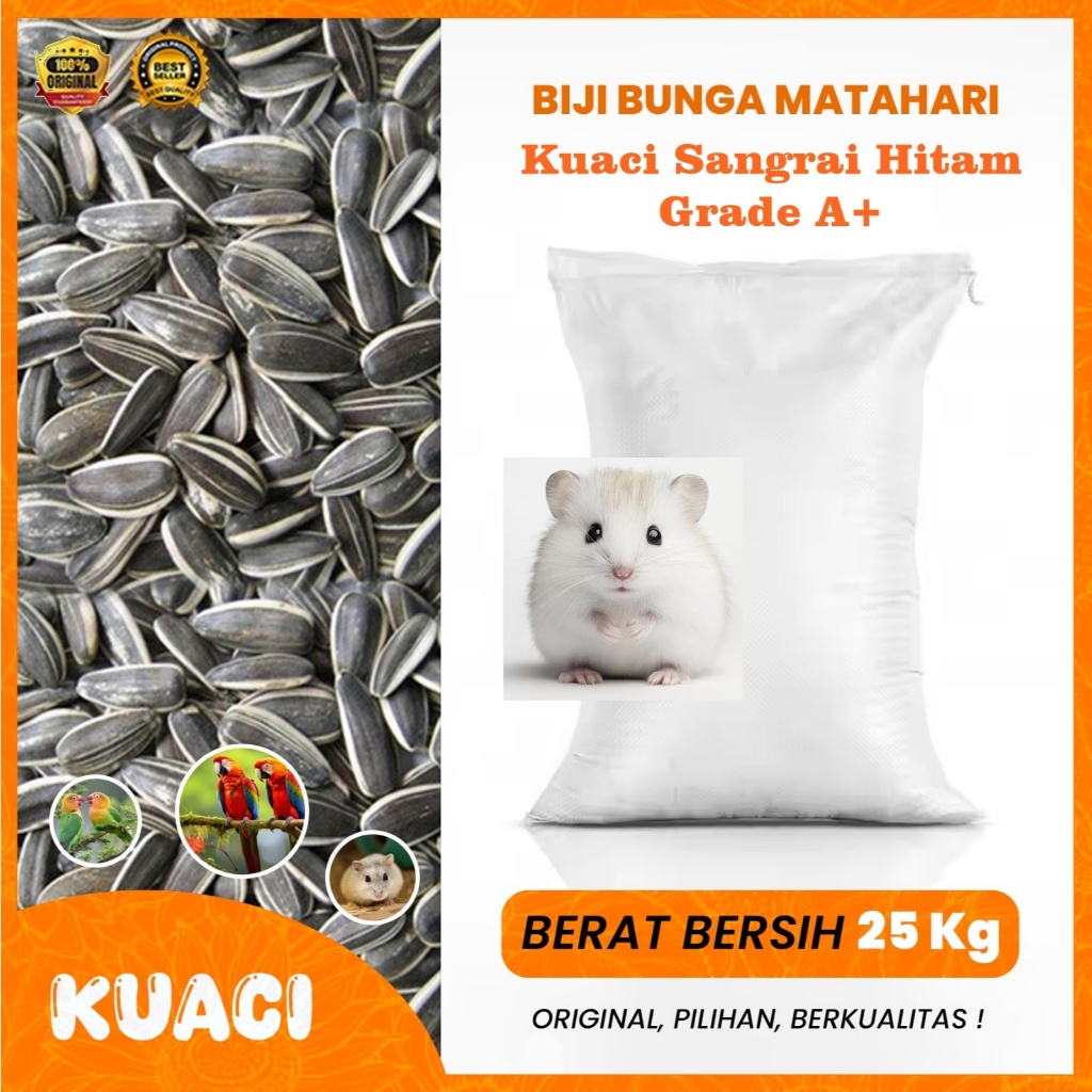 AQUABRIZZ Kuaci Sangrai Hitam Grade A+ 25kg Biji Bunga Matahari Sunflower Seed Pakan Hamster Burung Berlemak Bergizi Tinggi Bersih Karung