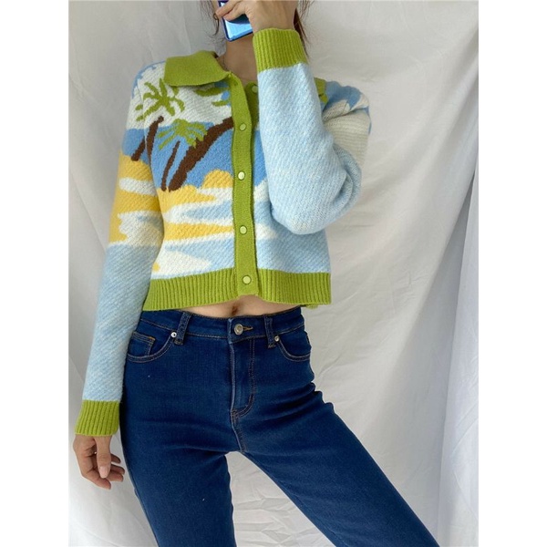 TheNext Amber | Jenna | Polo Knit Collar Cardi Rajut Beach Sunny Kerah Kardigan Top Lengan Panjang Vintage Korean Style