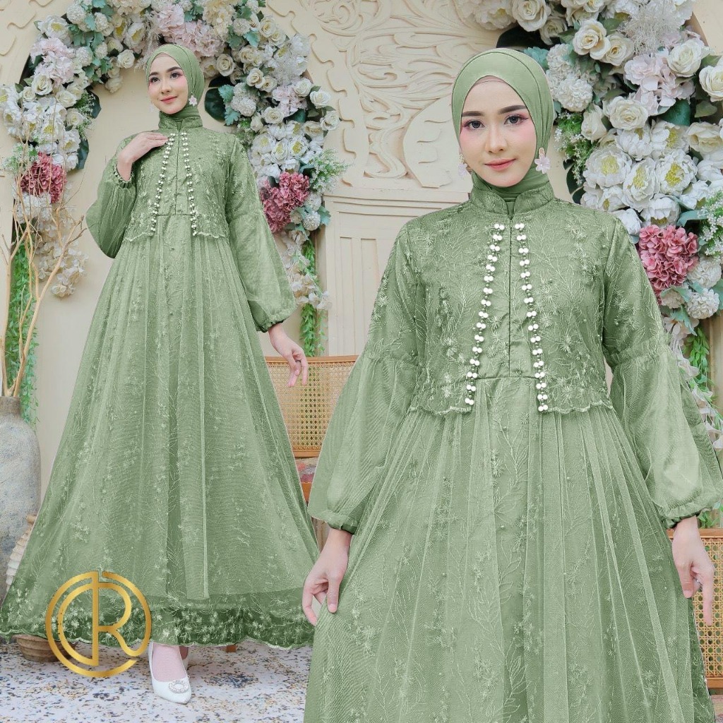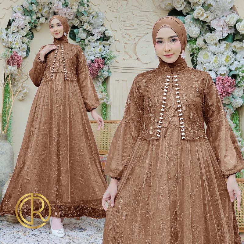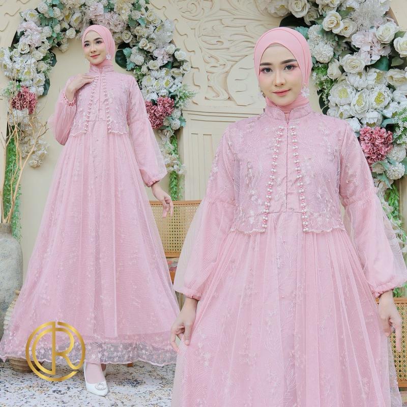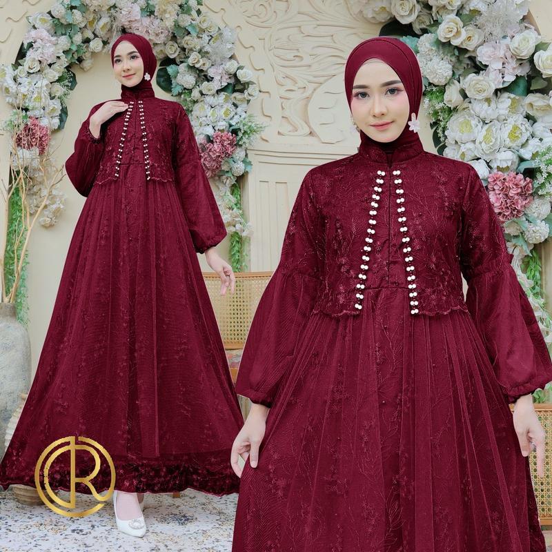 Aurora Boutiq MAXI ZEVANIA | M L XL | 10 WARNA | Busui Friendly Terbaru Gamis Brukat Bordir Mutiara Tiledot Fashion Busana Muslim Wanita Lebaran Mewah Kondangan Pesta Dress