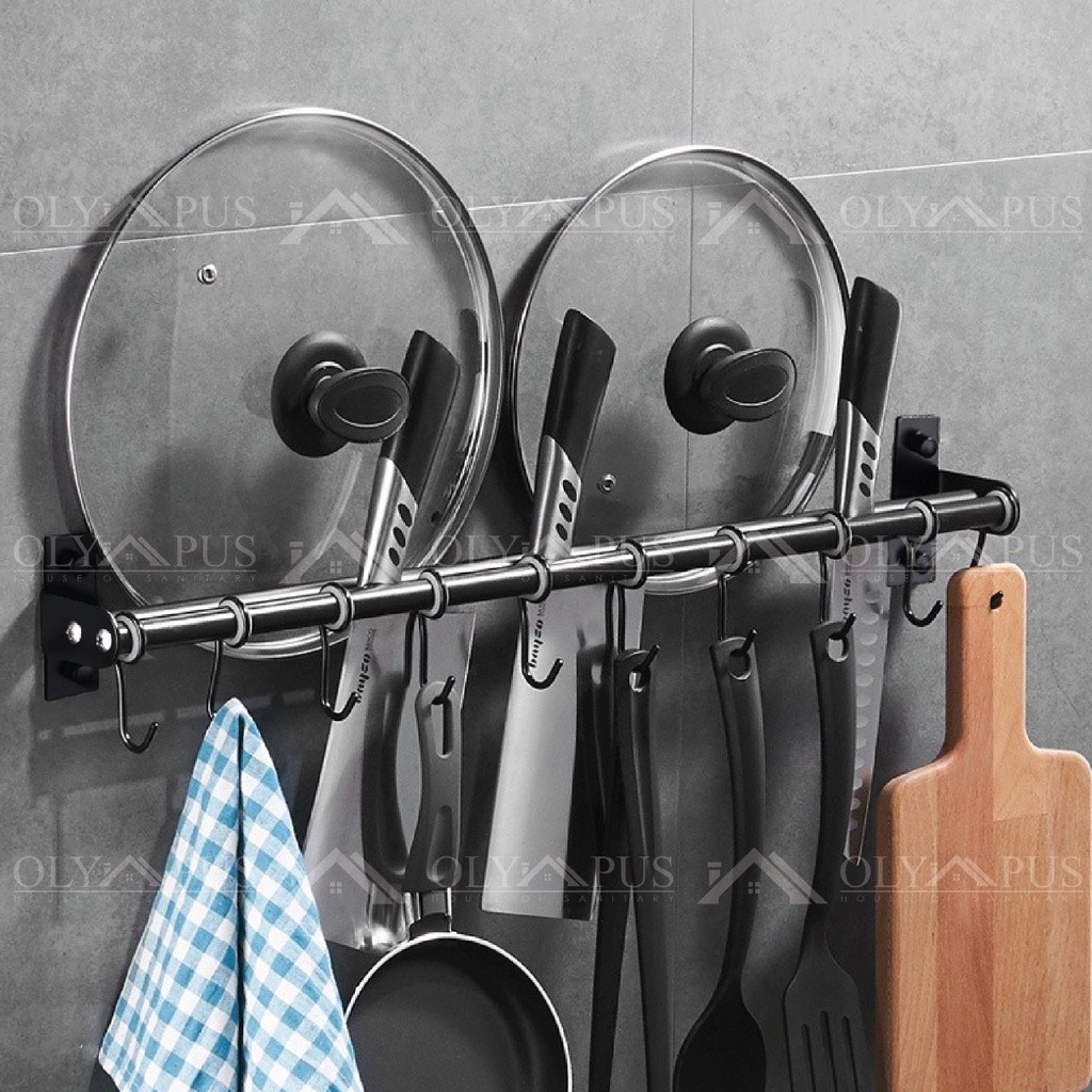 Kitchen Bar Minimalis 40cm 60 cm Rak Gantungan Dapur Pisau Sutil Panci Stainless Steel Hitam doff BOX