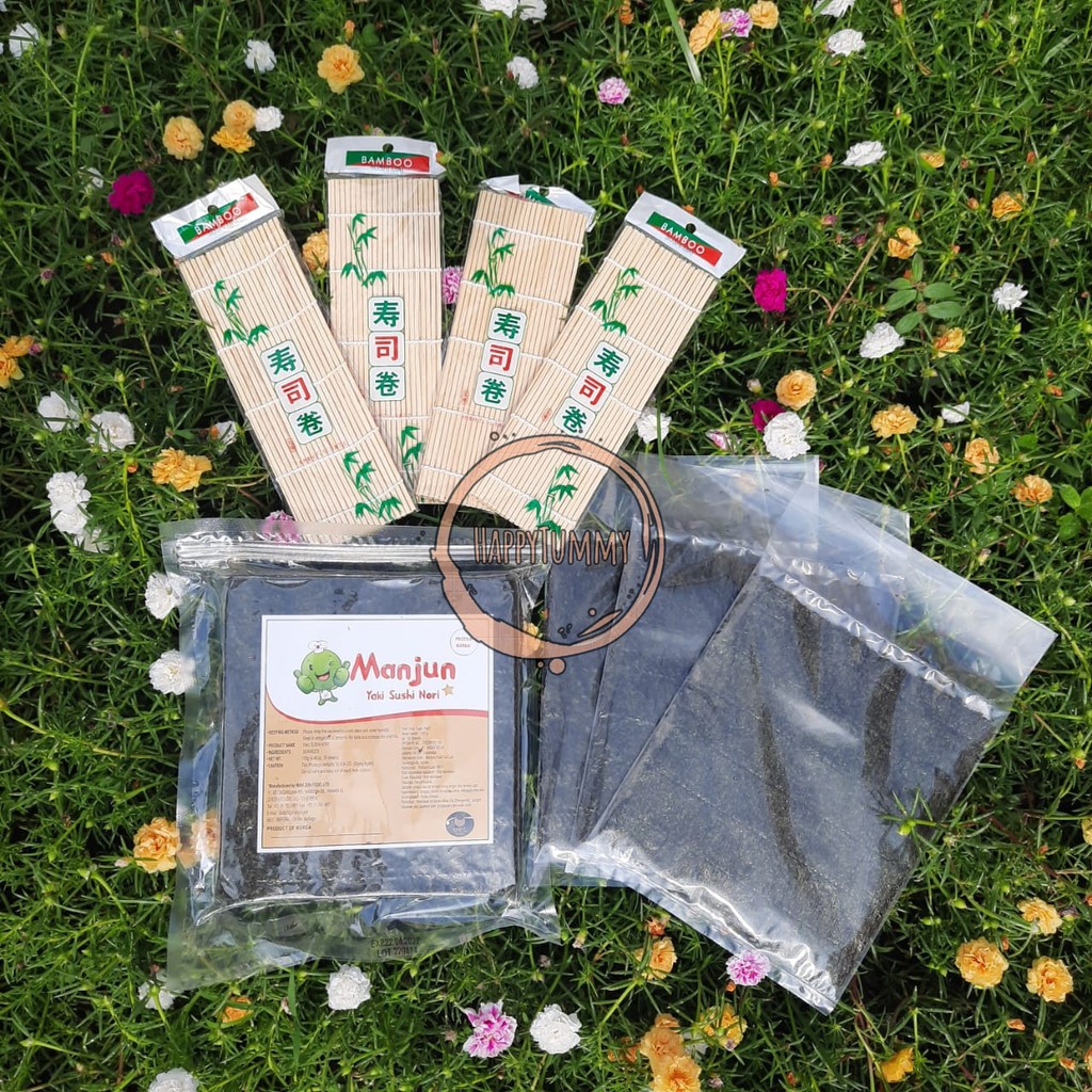 Manjun Nori HALAL PAKET 10 Lembar + sushimat Seaweed Rumput Laut Sushi Gimbap Korean Yaki