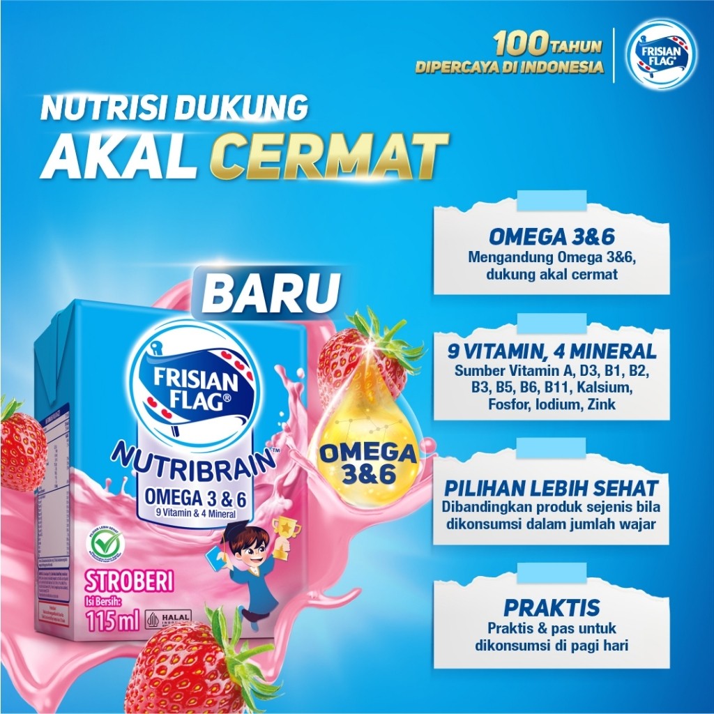 Frisian Flag Omega Susu UHT Strawberry 110ml x 36 pcs (Karton)