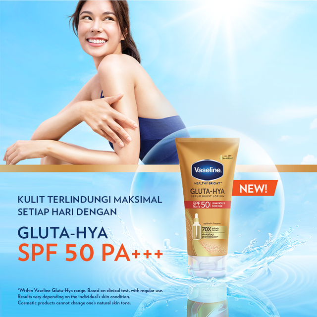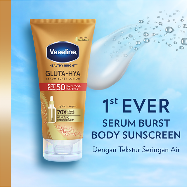 Vaseline Gluta-Hya Serum Burst Sunscreen SPF 50 PA+++ 200ml - Body Serum Sunscreen Mencerahkan