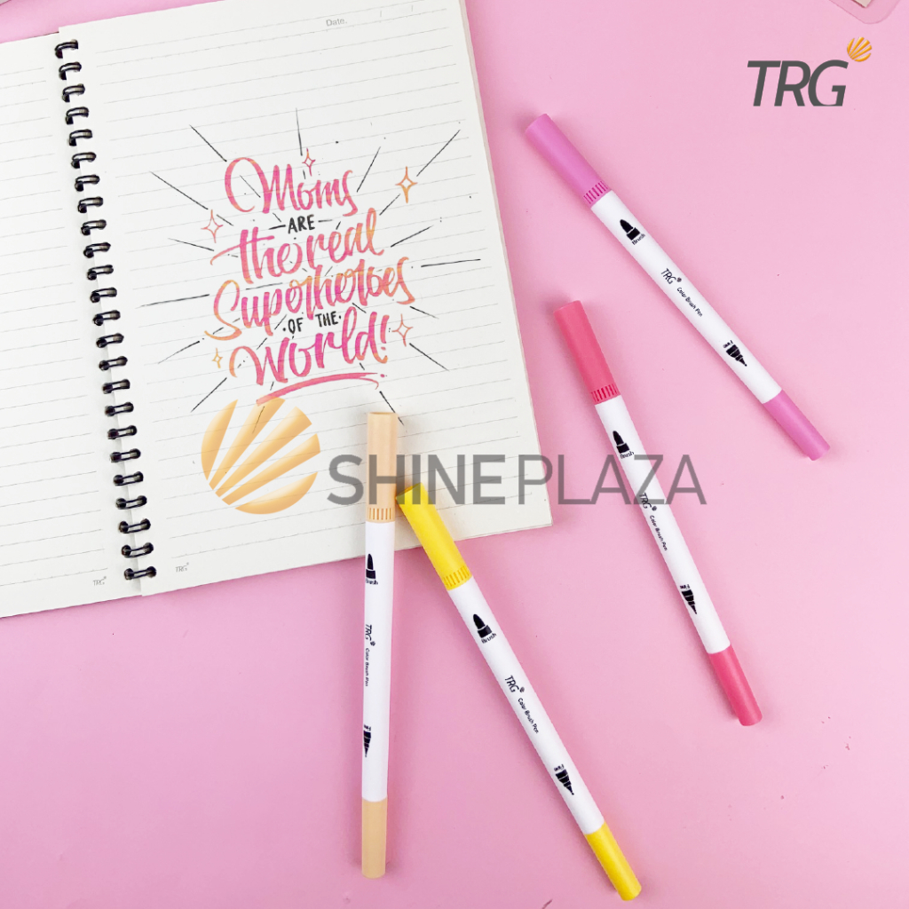 TRG Color Brush Pen Set Double Tip Pastel 12 Colors CBP-02 - Pulpen Pena Spidol Kuas Warna TRG