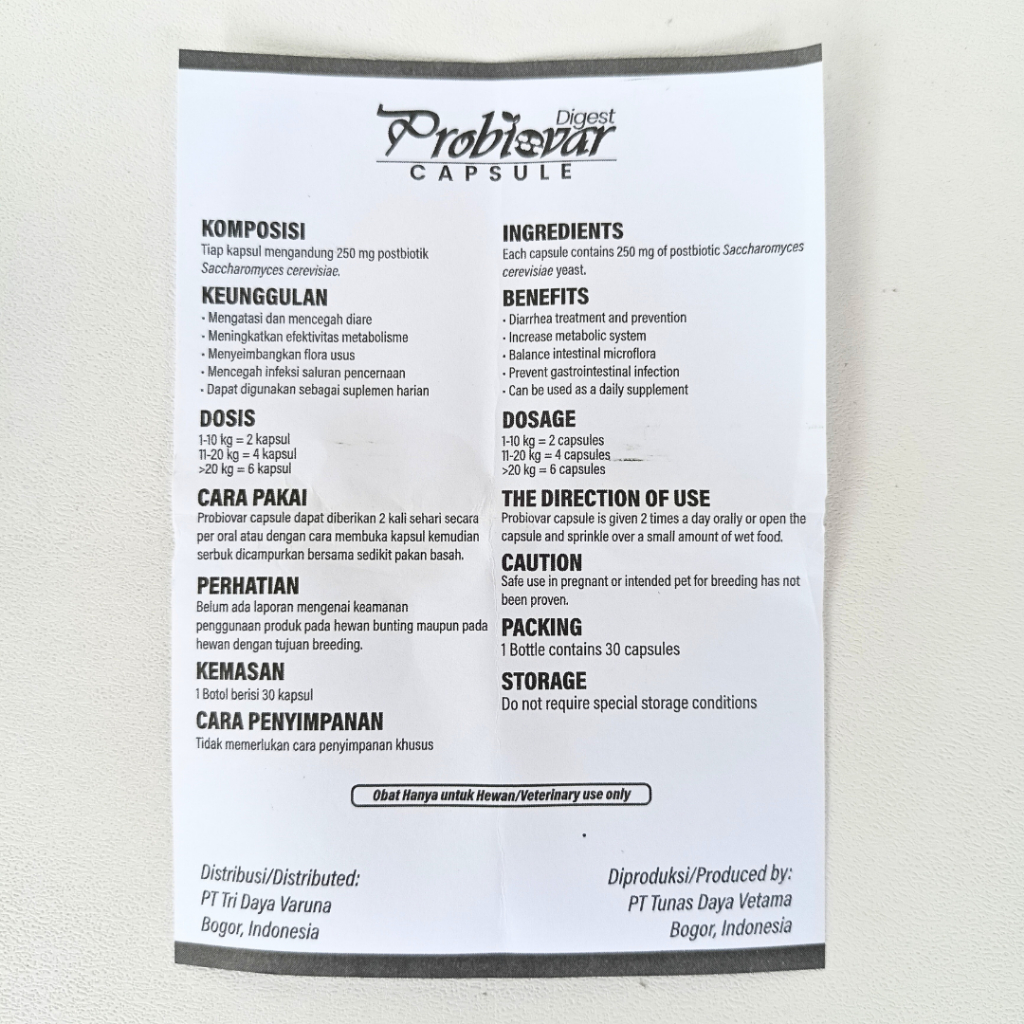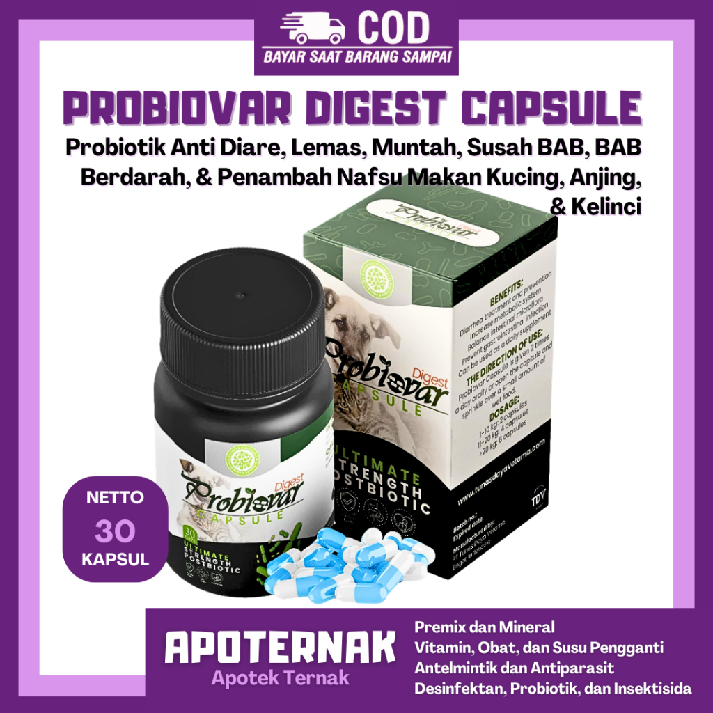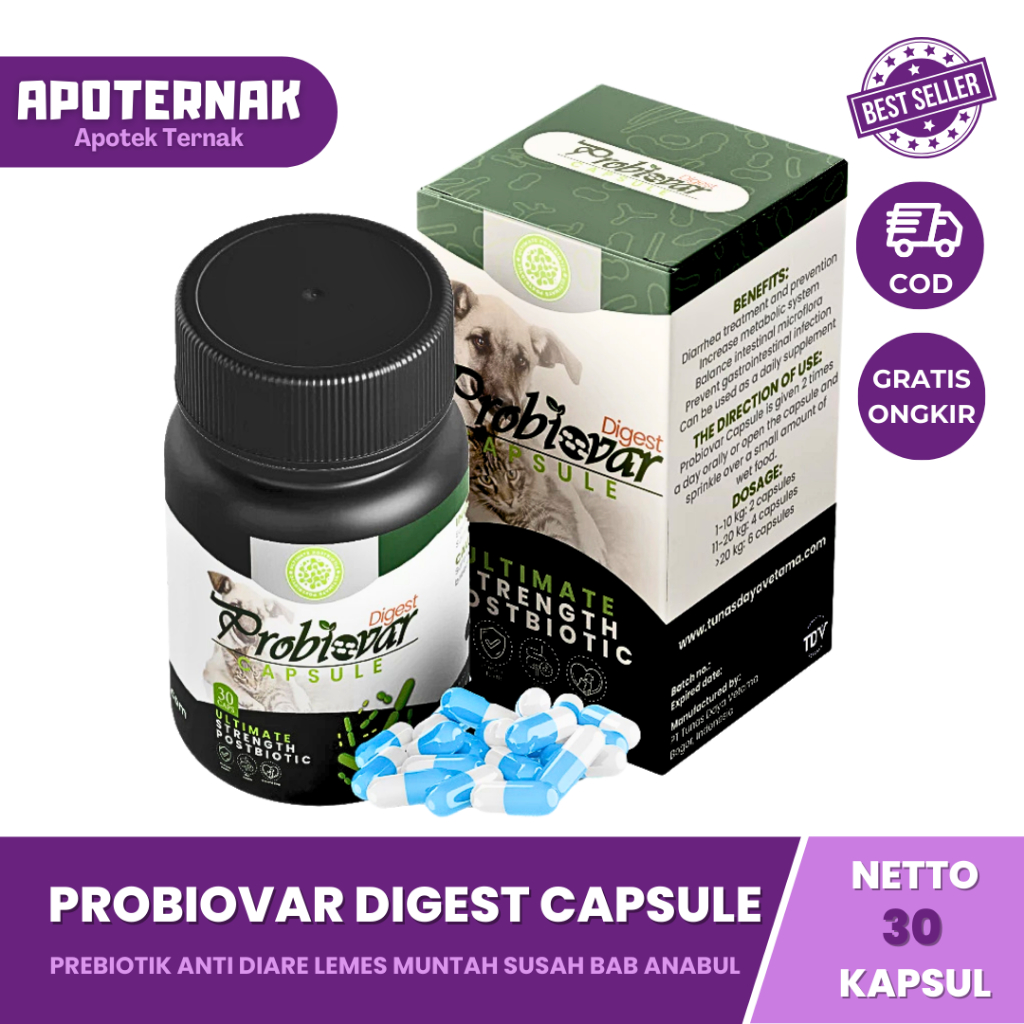 PROBIOVAR DIGEST 30 Kapsul - Probiovar Kapsul Obat Diare Kucing Anjing Rekomendasi Dokter Hewan