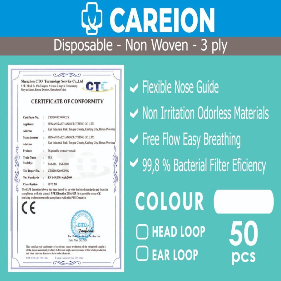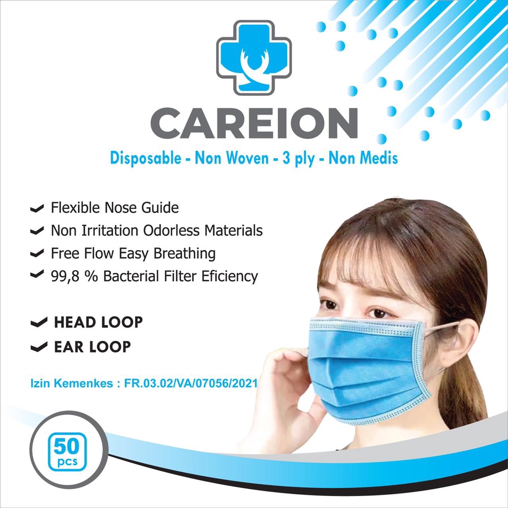 MASKER 3 PLY CAREION isi 50pc / FACE MASK / DISPOSABLE MASK / MASKER 3PLY MULUT ISI 50pc