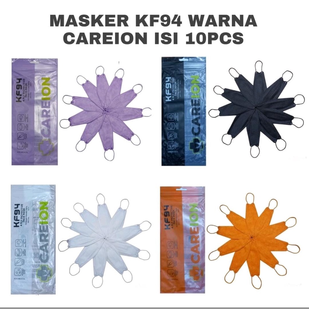 MASKER KOREA KF 94 CAREION ISI 10 PCS WARNA WARNI MASKER 4 PLY MASKER KF94 4D WARNA -10PC
