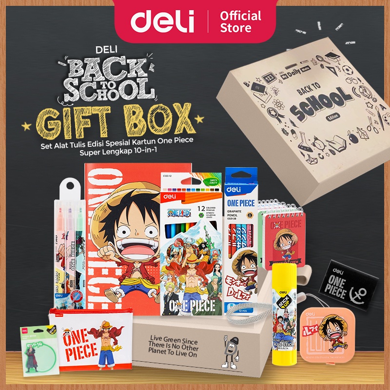 [Deli Back to School GIFT BOX] Set Alat Tulis Edisi Spesial Kartun One Piece Super Lengkap 10-in-1