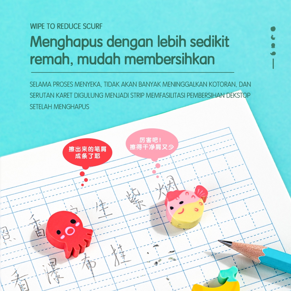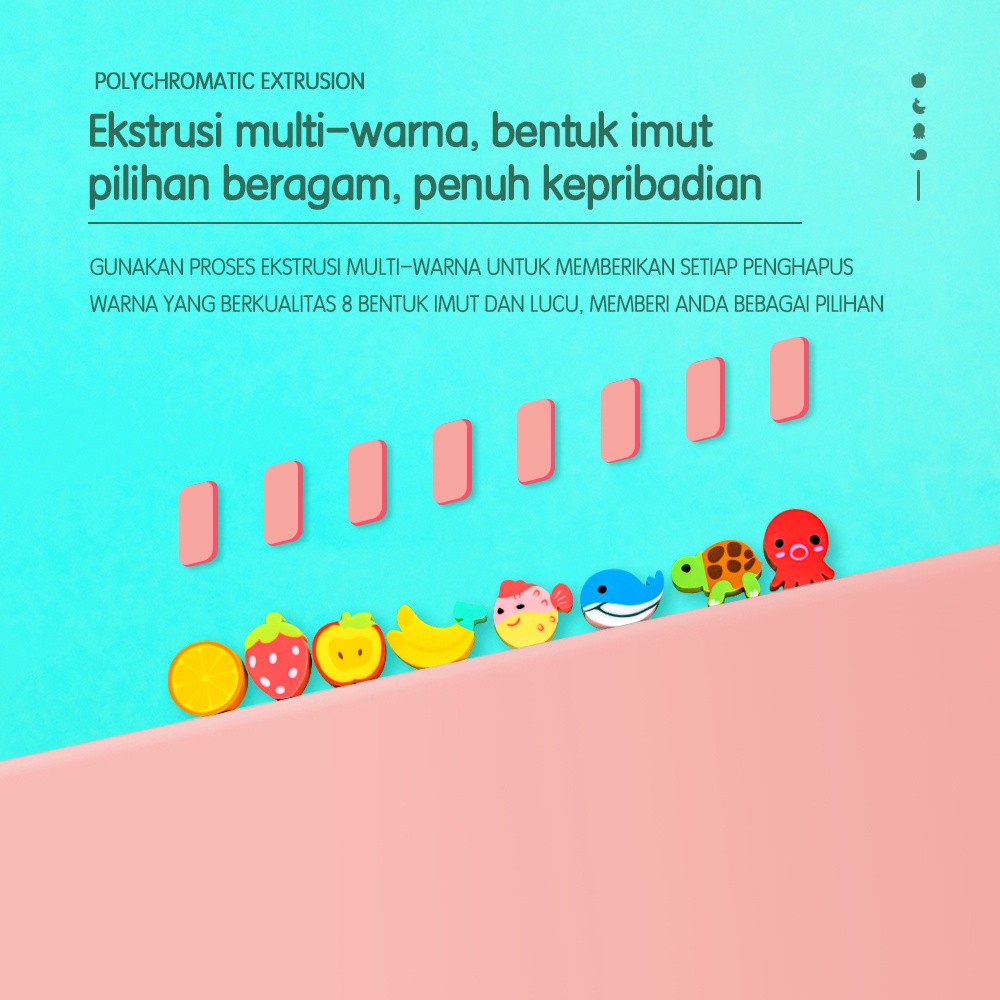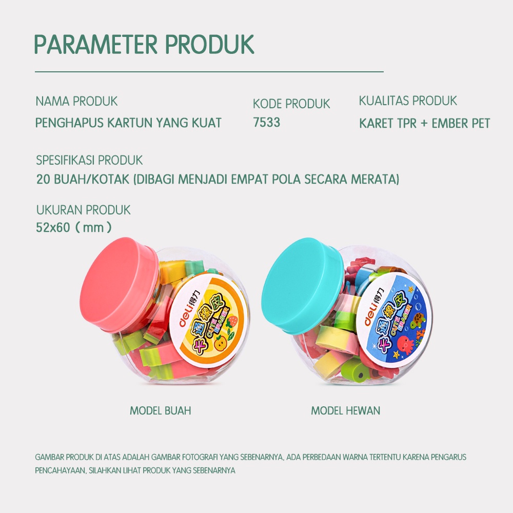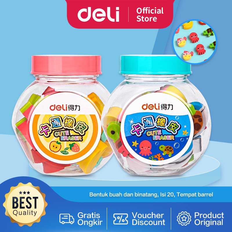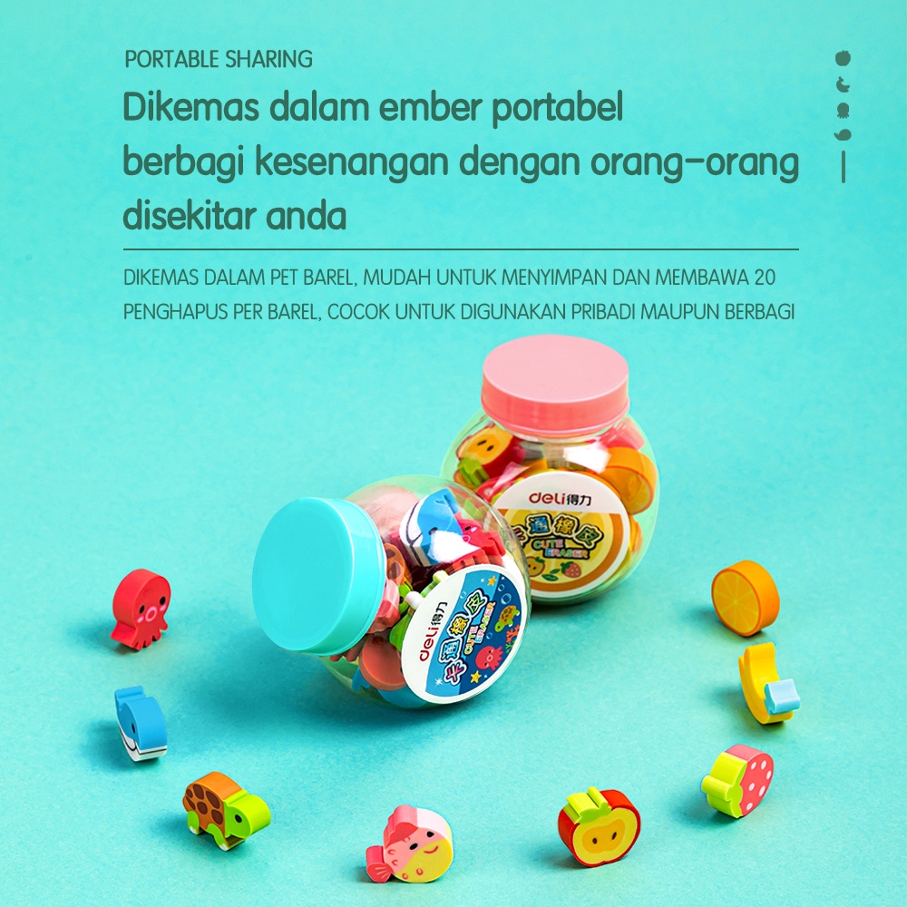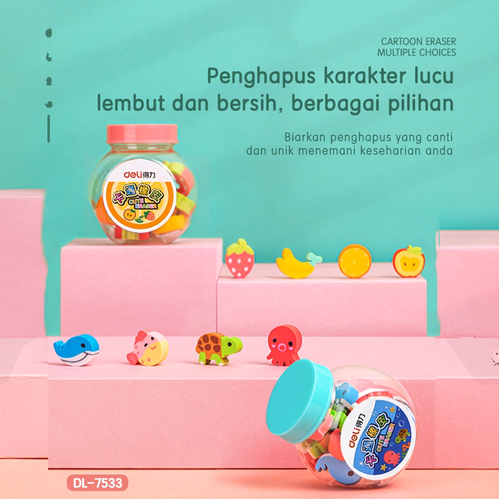 Deli School Eraser / Penghapus Hapusan Buah dan Binatang Lucu isi 20 7533