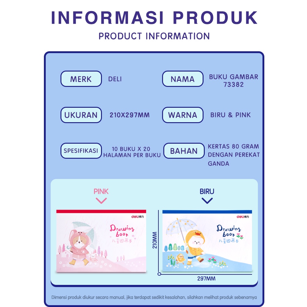 Deli Painting Book / Buku Gambar 20 Lembar Kertas Tebal Tidak Tembus 73381 73382