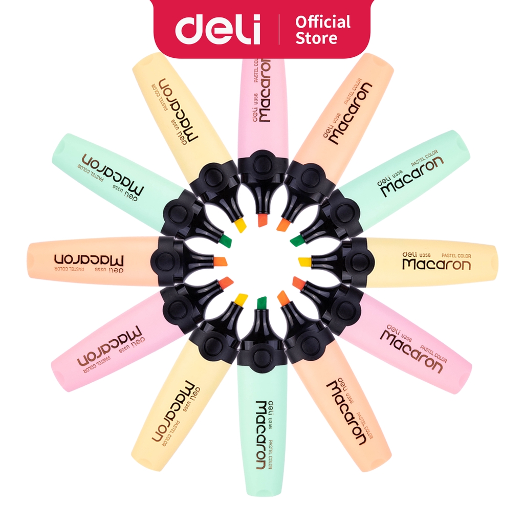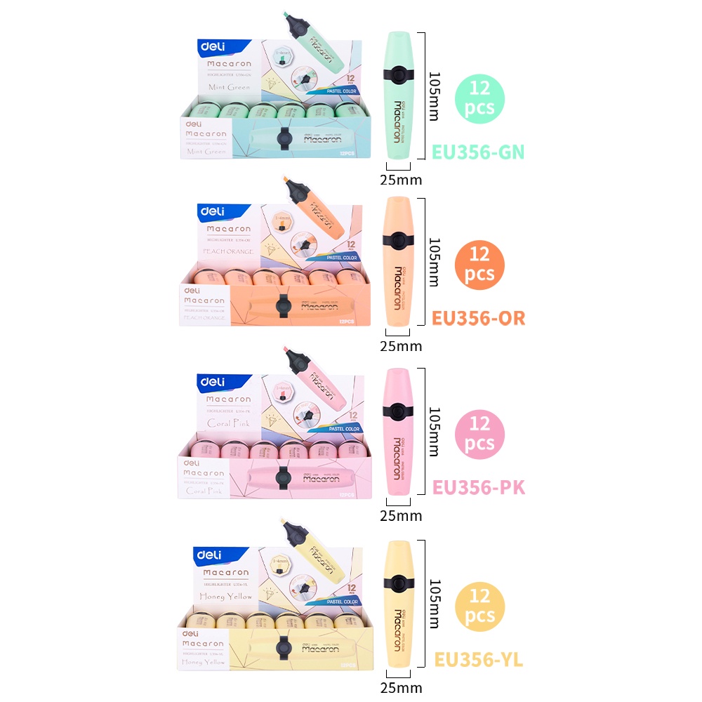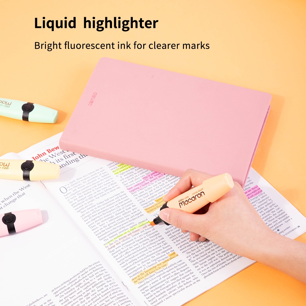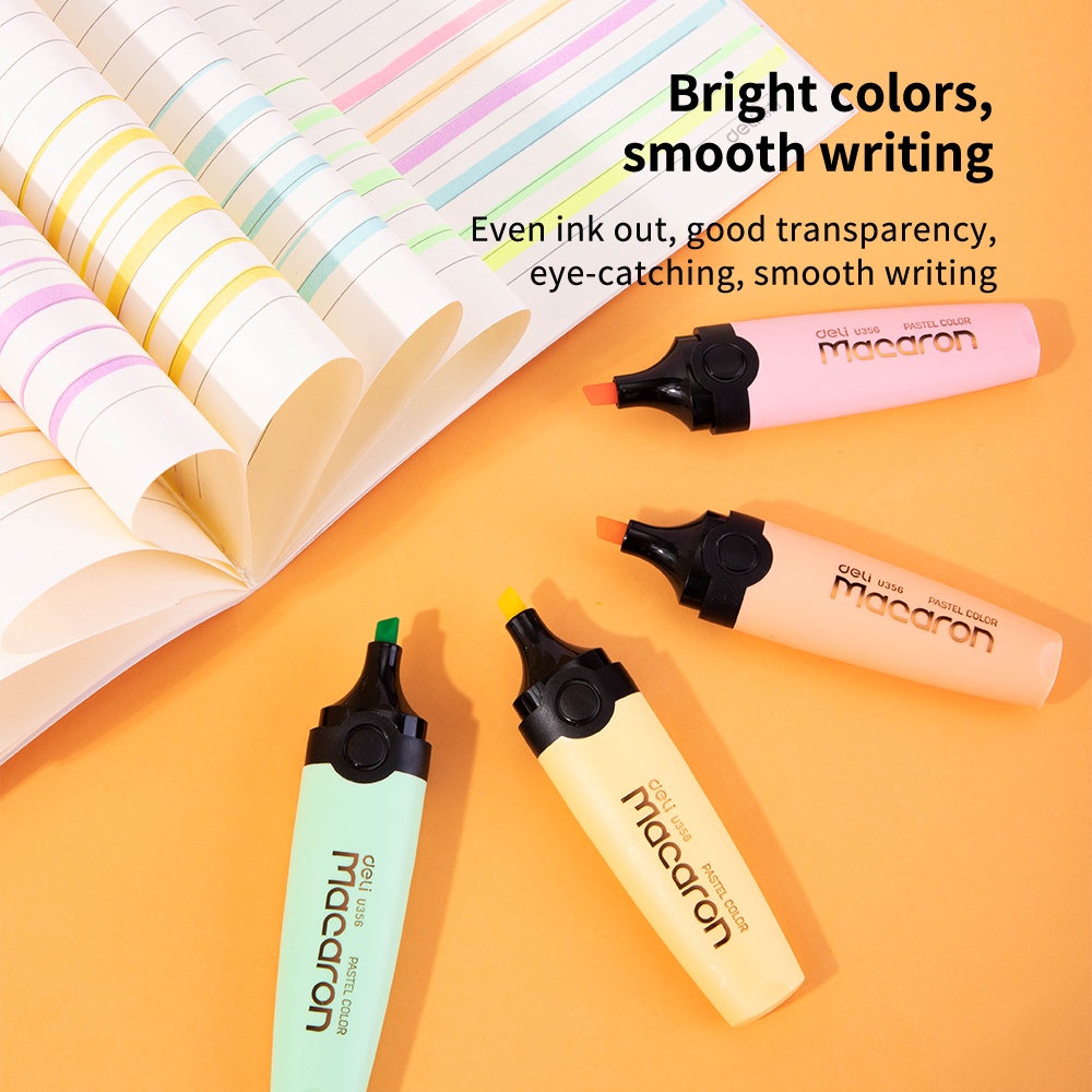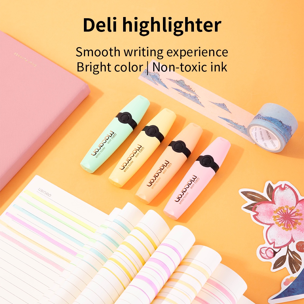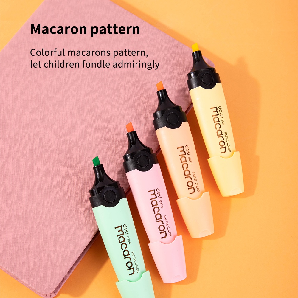Deli Macaron Highlighter Mint Green/Honey Yellow/Coral Pink/Peach Orange tidak beracun EU356