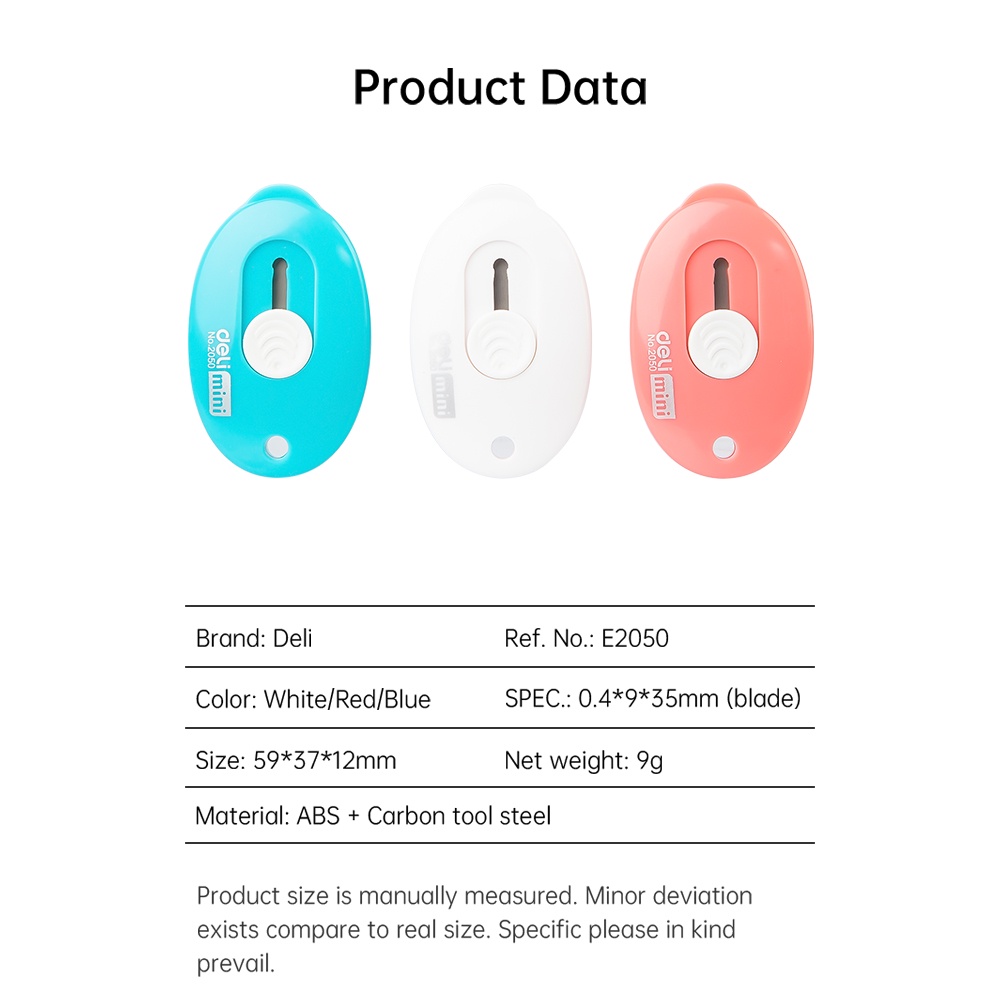 Deli Mini Cutter Portabel 3 Warna Desain Simple, Pisau Tajam, Untuk Membuka Paket E2050