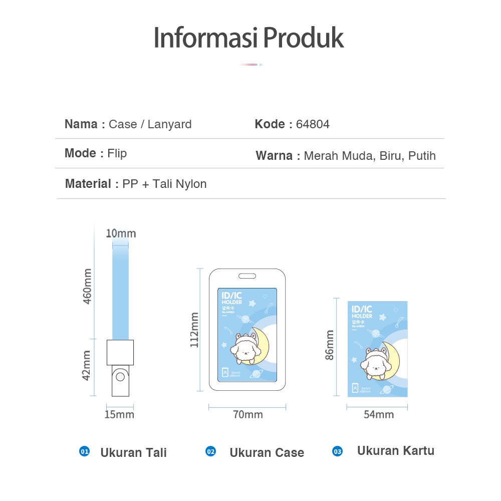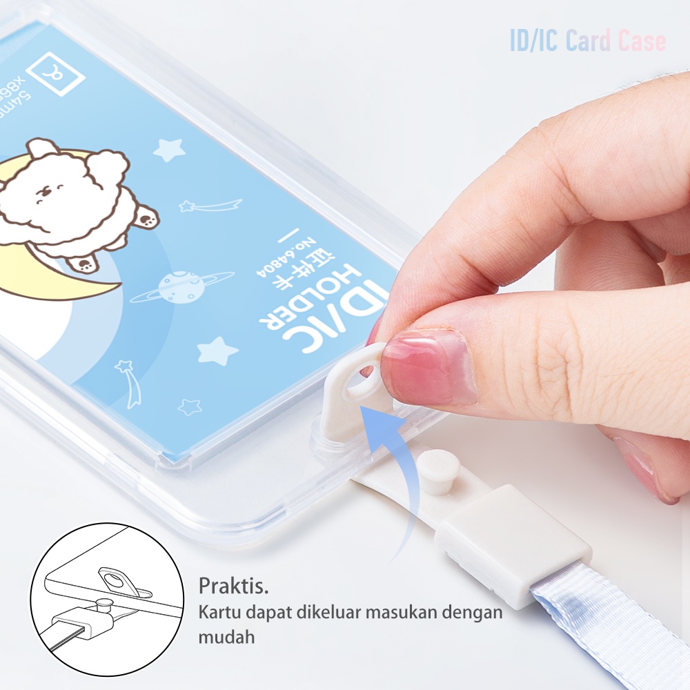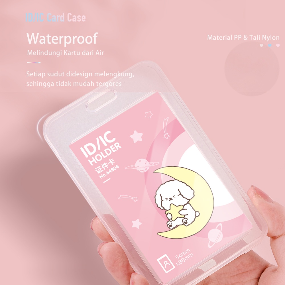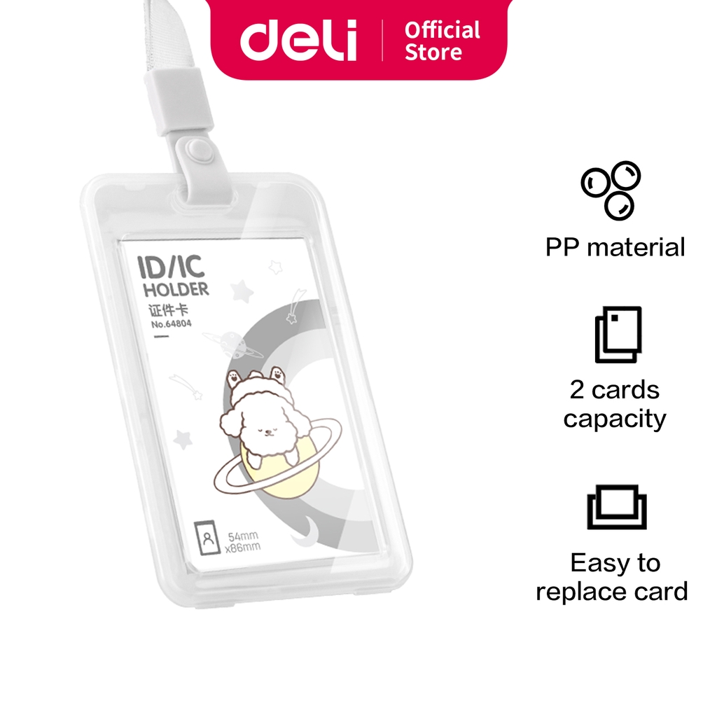 Deli Name Tag Kartu Tanda Pengenal Motif Doodle Warna Putih/Pink/Biru, Lanyard Bisa Ditarik 6480X