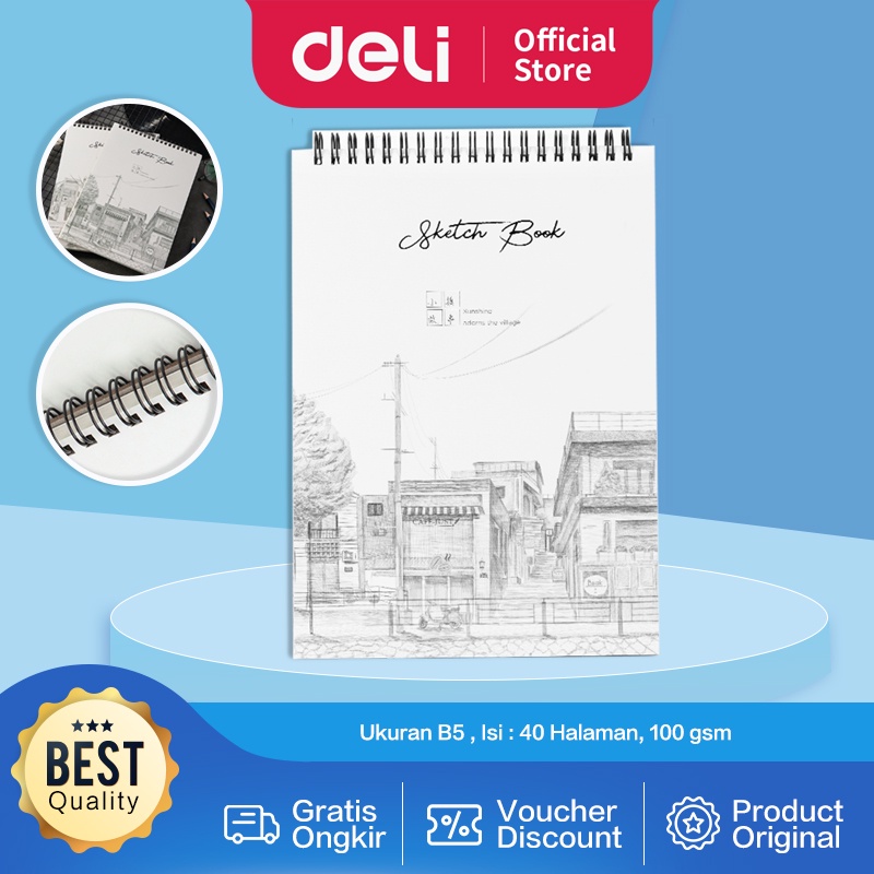 Deli Buku Gambar B5 Vertikal Jilid Spiral, 40 Halaman, Dapat Dibalik 360 Derajat 73628