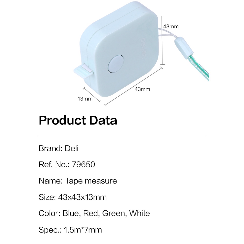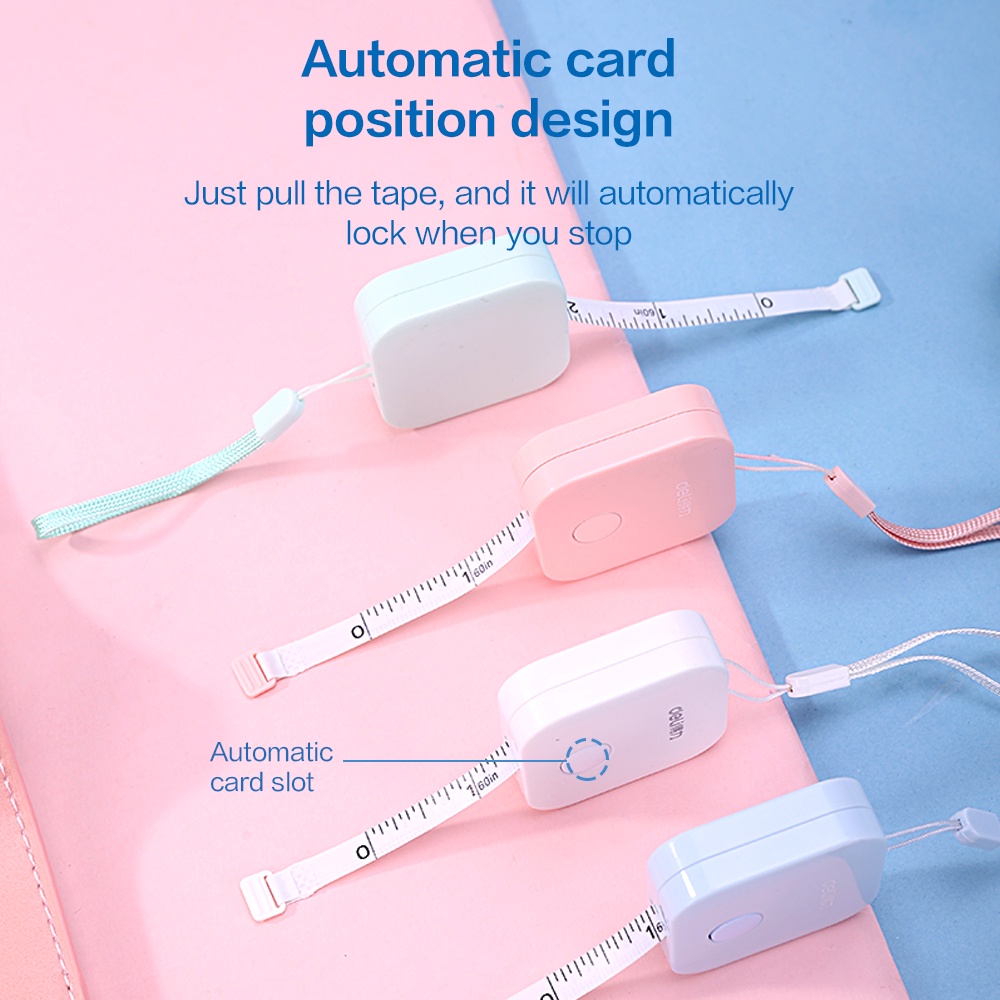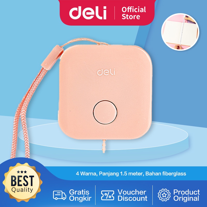 Deli meteran mini plastik bahan fiberglass, tidak mudah kusut dan tahan lama 4 warna 1.5m 79650
