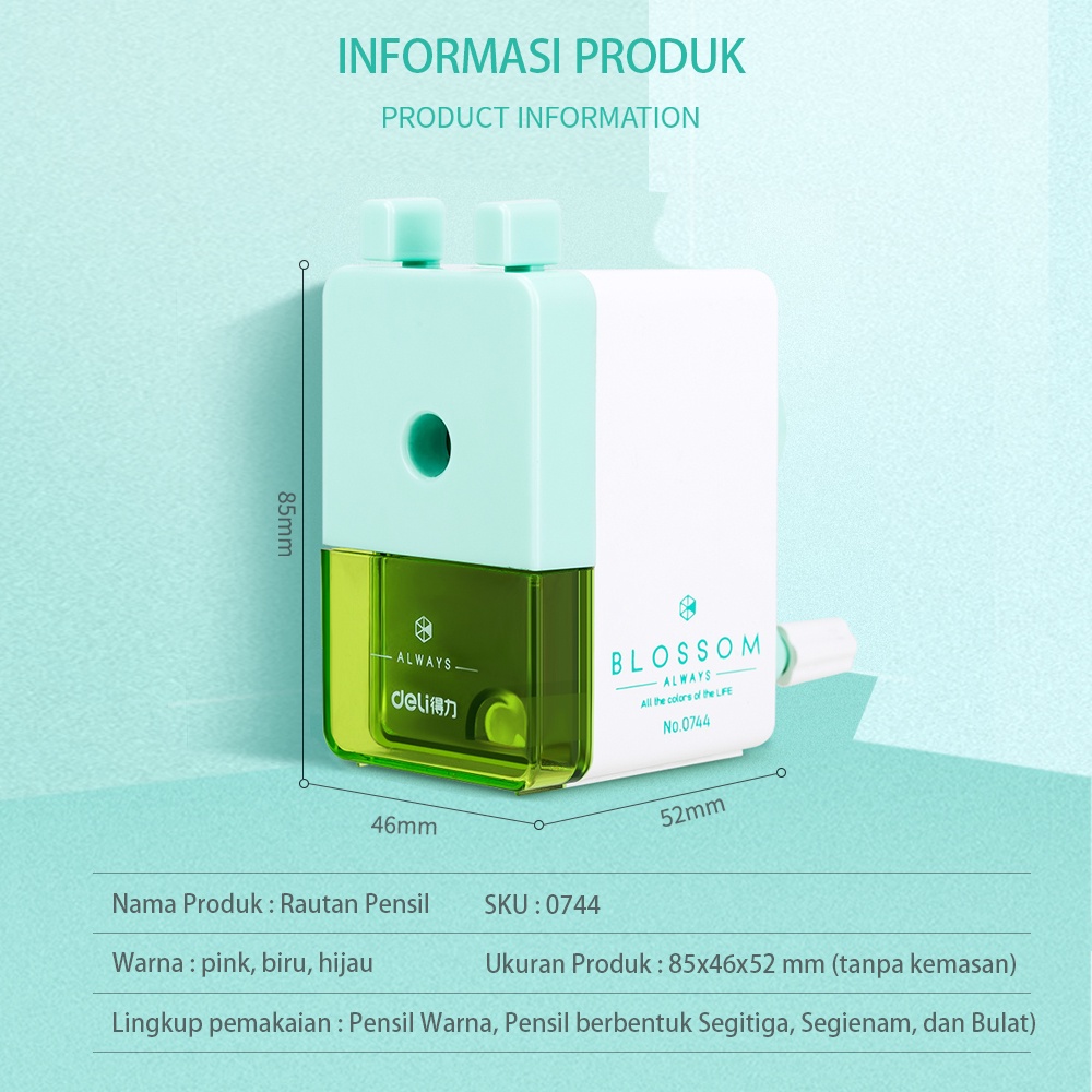Deli rautan putar / rautan meja 3 warna anti slip, pisau terbuat dari bahan besi alloy 0744