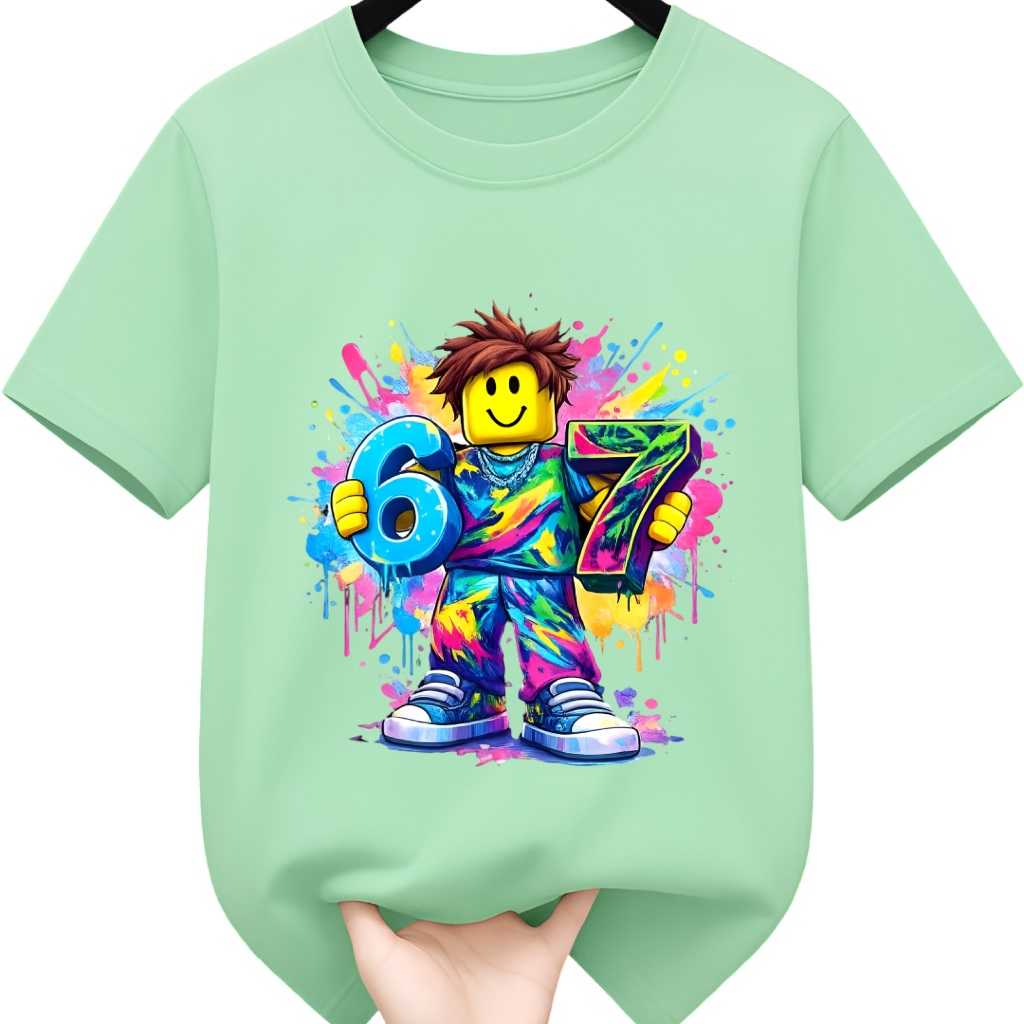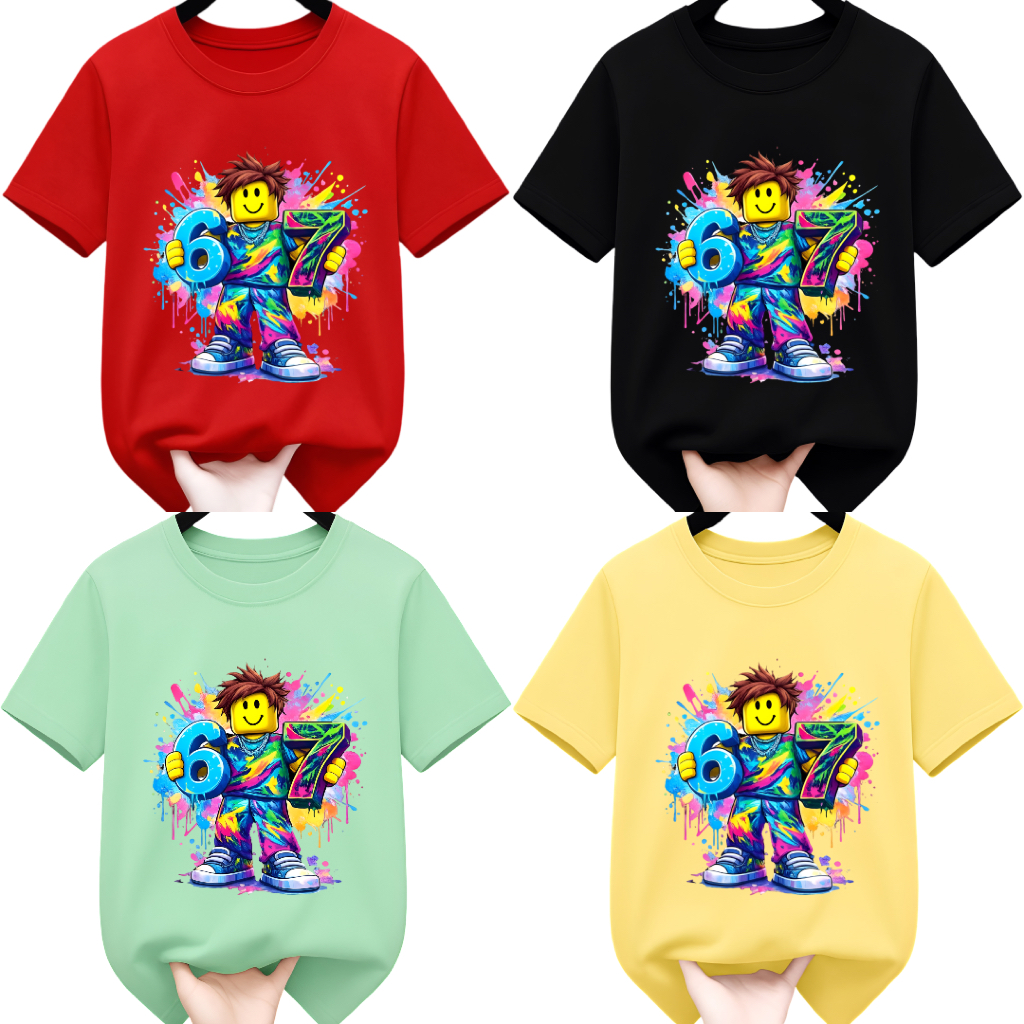 KAOS ANAK 1-12TAHUN DENGAN MOTIF SIX SEVEN ROBLOX ADA PILIHAN 9WARNA BAHAN SEMI KATUN 24S