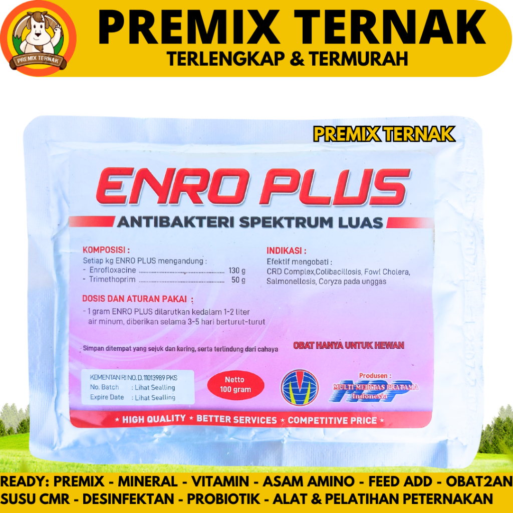 ENRO PLUS 100 GRAM M2P - Obat Ayam Antibakteri Atasi Infeksi CRD Snot Ngorok Koli Kolera Unggas