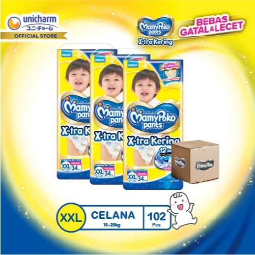 MamyPoko Pants X-tra Kering - XXL 34 - Popok Celana - 3 Packs