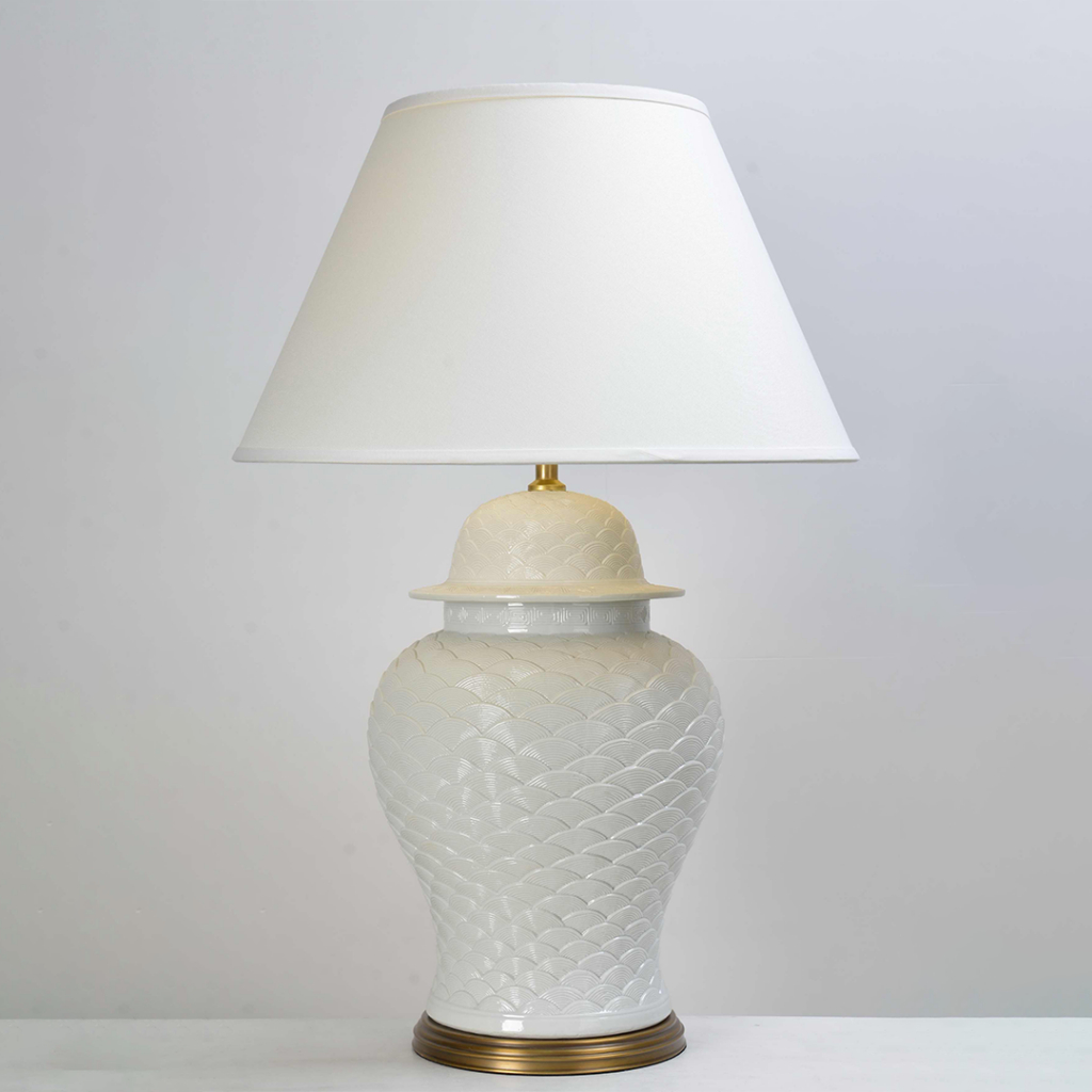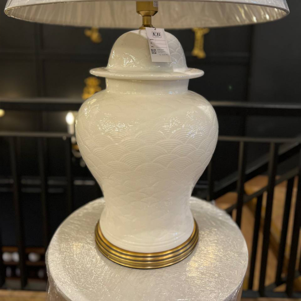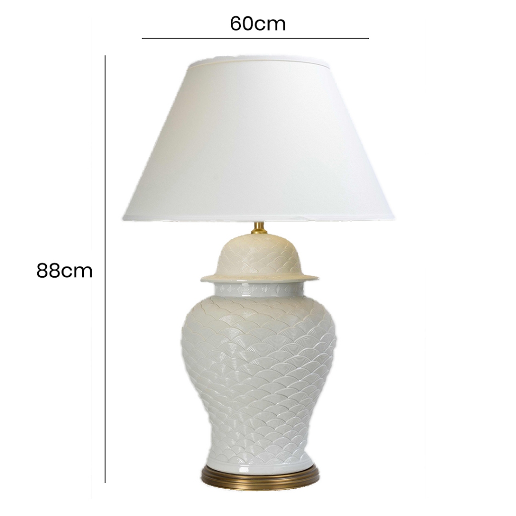 Lampu Meja Hias Putih Minimalis / Ariel White Scales Table Lamp EB 2456