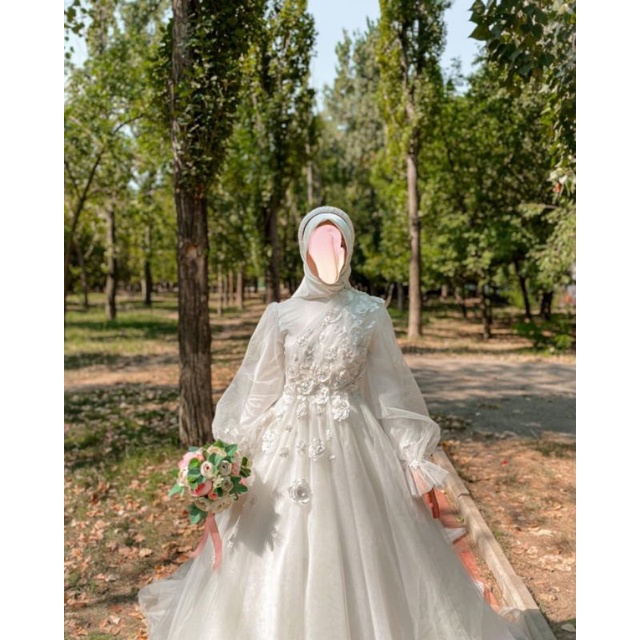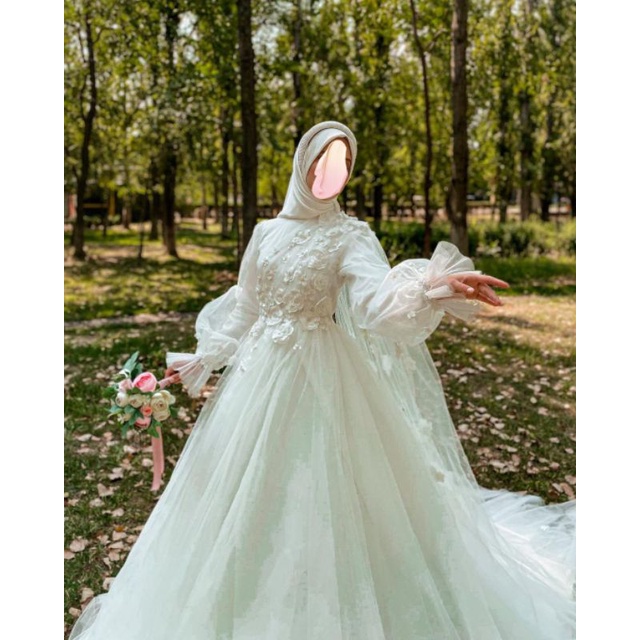 gaun pengantin syari turki (gaun, jilbab, cadar, veil)