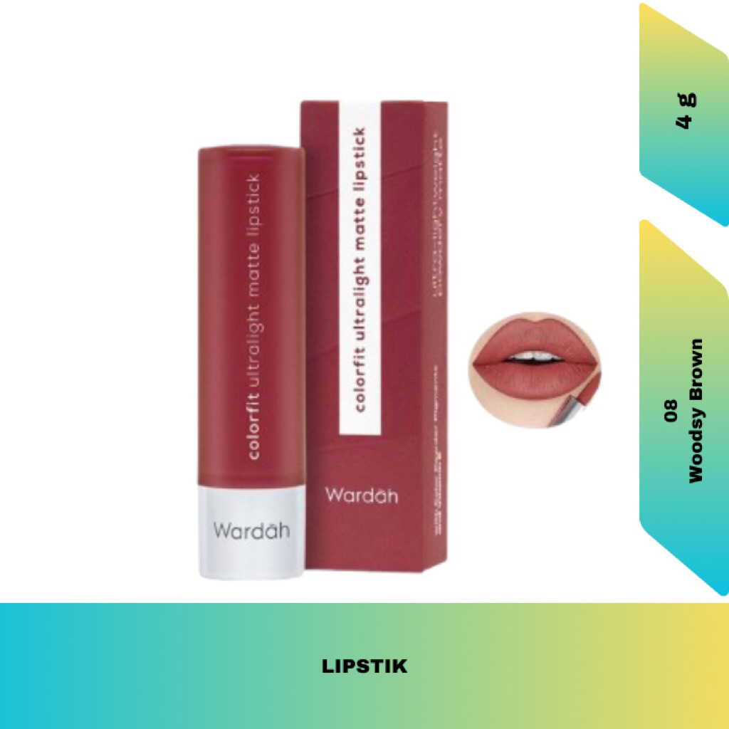 Wardah Lipstik Colorfit Ultralight Matte 08 Woodsy Brown 4g - Tekstur Ringan Tahan Lama Hingga 8 Jam