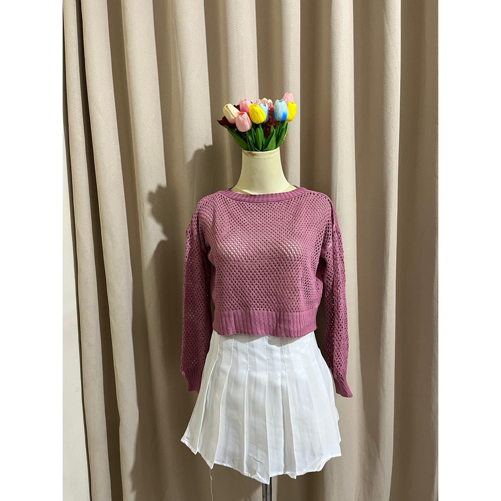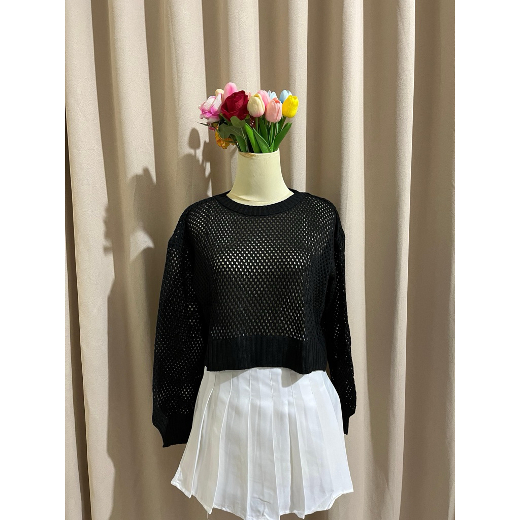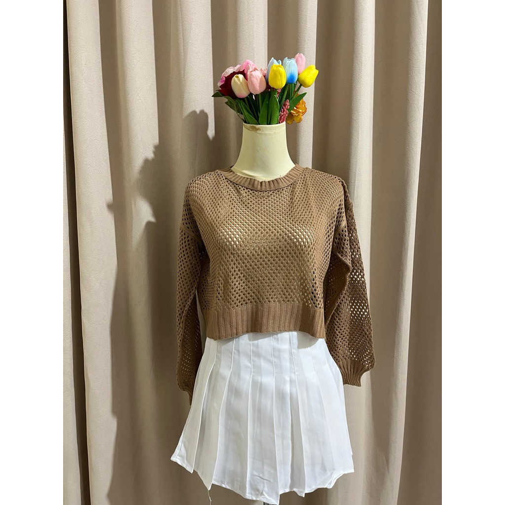COD- Sweater Basic Outer Crop Rajut Jaring Fuji Terbaru