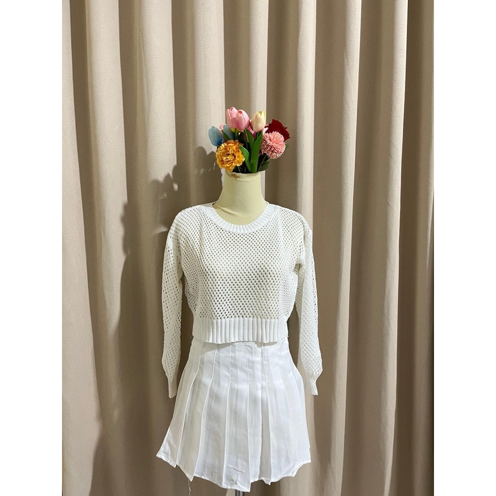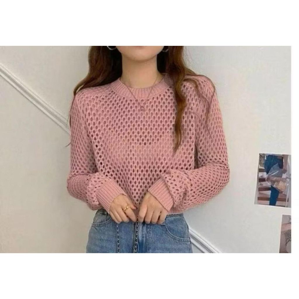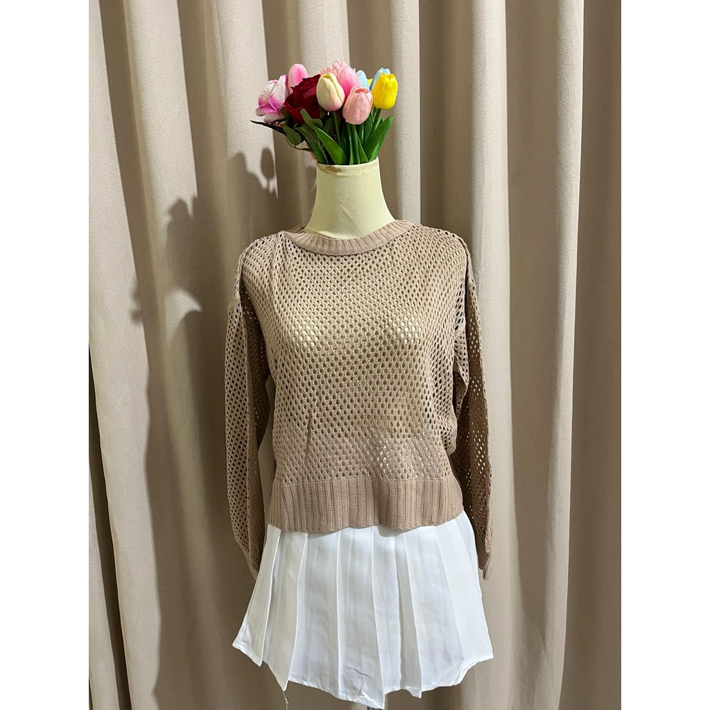 COD- Sweater Basic Outer Crop Rajut Jaring Fuji Terbaru