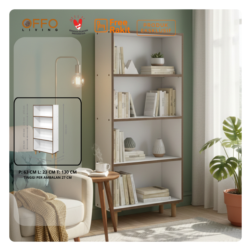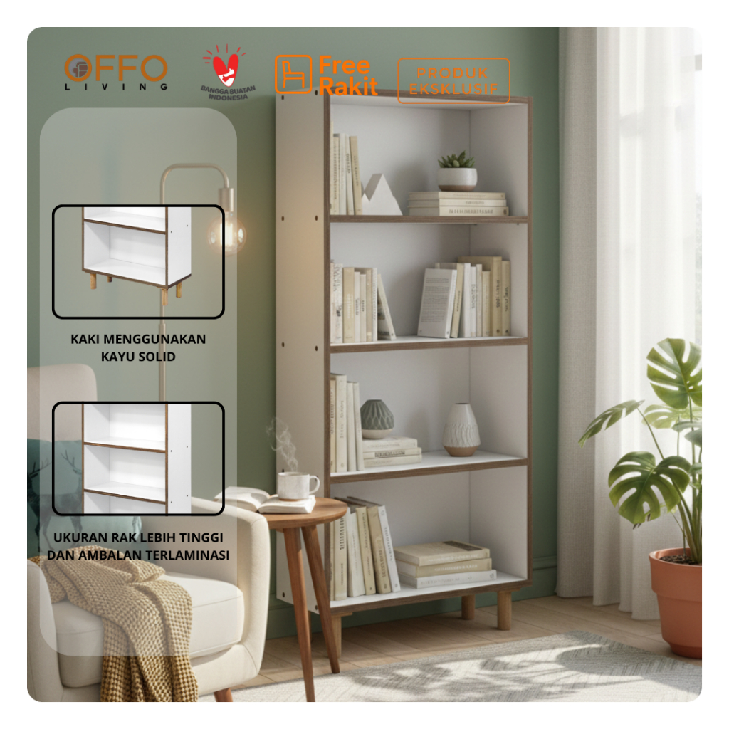 Offo Living - Rak Buku Portable Serbaguna Minimalis Ekonomis 4 Tingkat