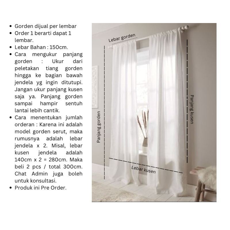 Gorden Linen Tirai Villa Aesthetic Putih