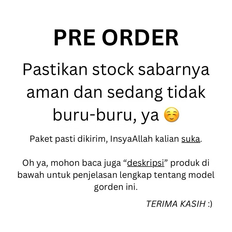Pre-Order (dikirim dalam 14 hari) Estimasi tiba 9 Apr