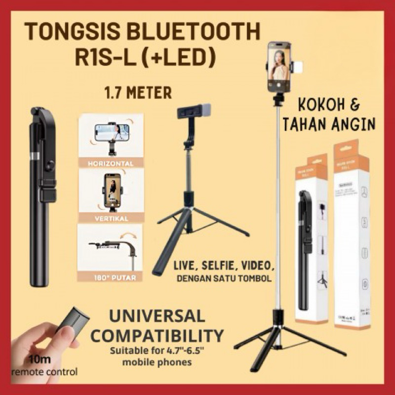 Tongsis Tripod R1S L (Panjang Max 170cm) + Remot Bluetooth + Lampu LED