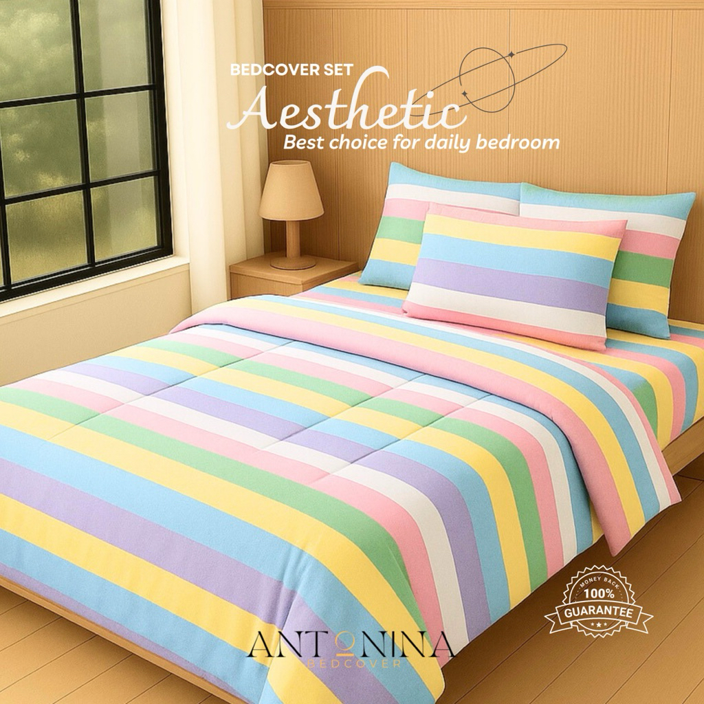 Bed cover Set Aesthetic Minimalis Bedcover Sprei Motif Buble Gum Sprey Korea ukuran 160x200 120x200