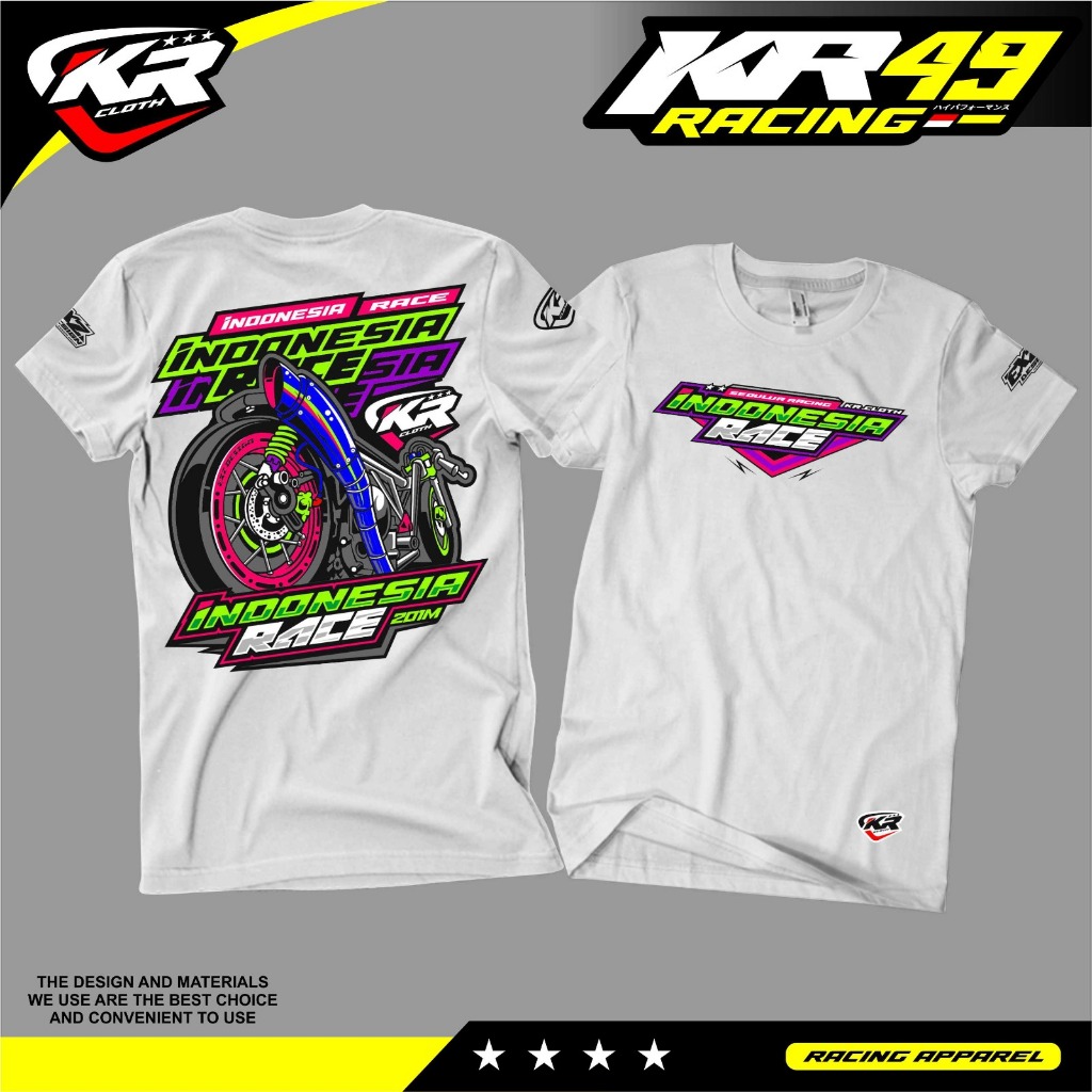 KAOS RACING INDONESIA RACE PUTIH - KUALITAS DISTRO PREMIUM BAHAN COTTON COMBED 30S ADEM