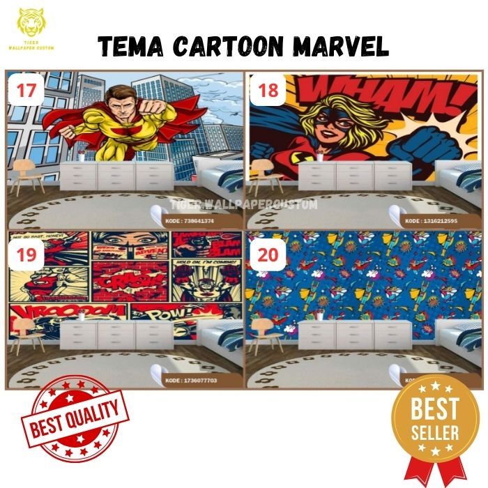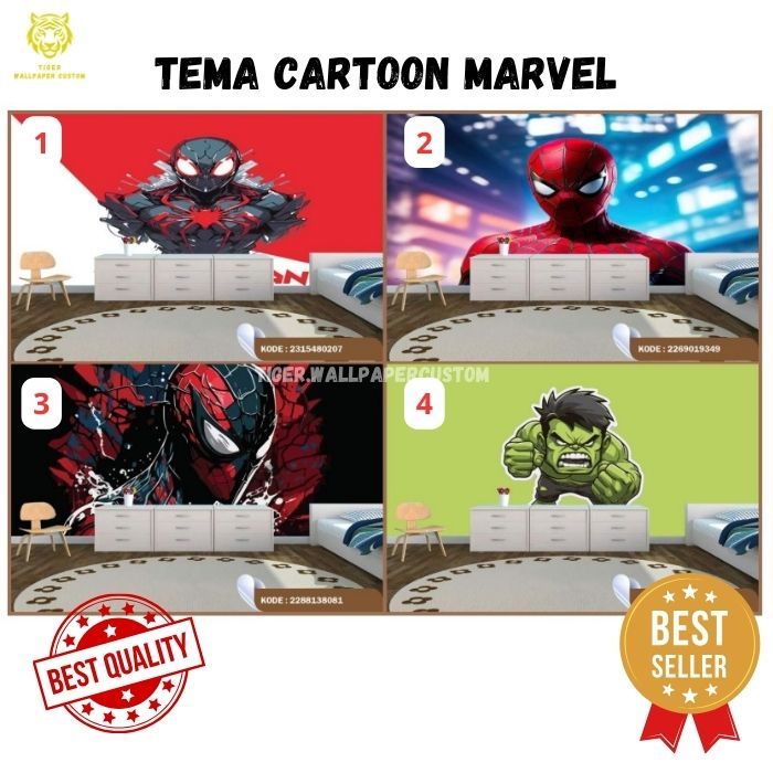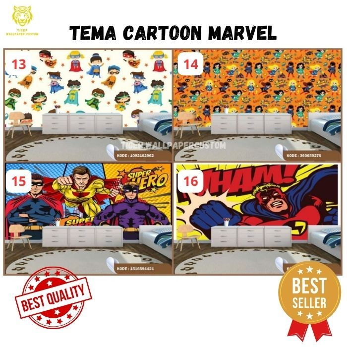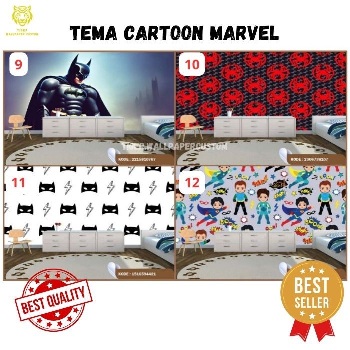 Wallpaper Custom Dinding Motif Marvel - Kartun - Spiderman - Batman - Ironman