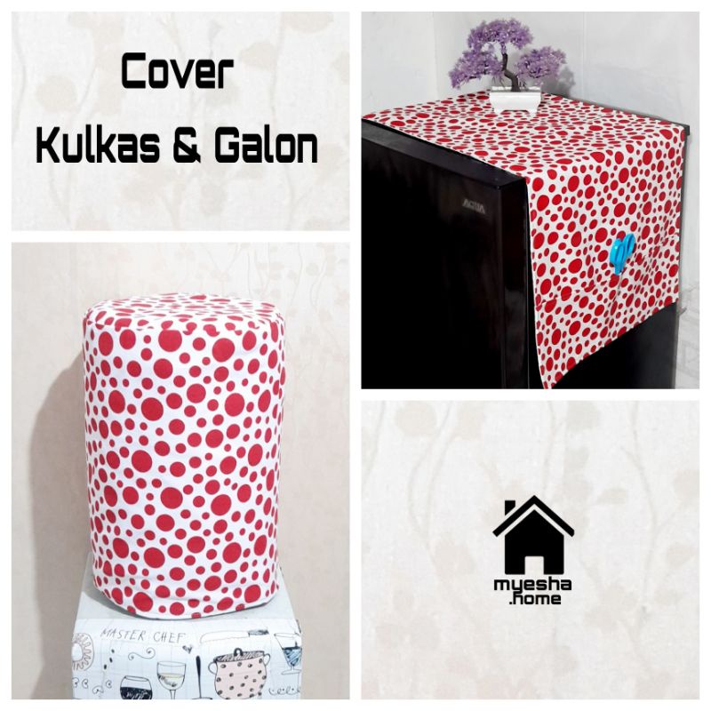 Satu Set Cover Sarung Tempat Tutup Kulkas 1 & 2 Pintu galon Dispenser Motif Minimalis KG20