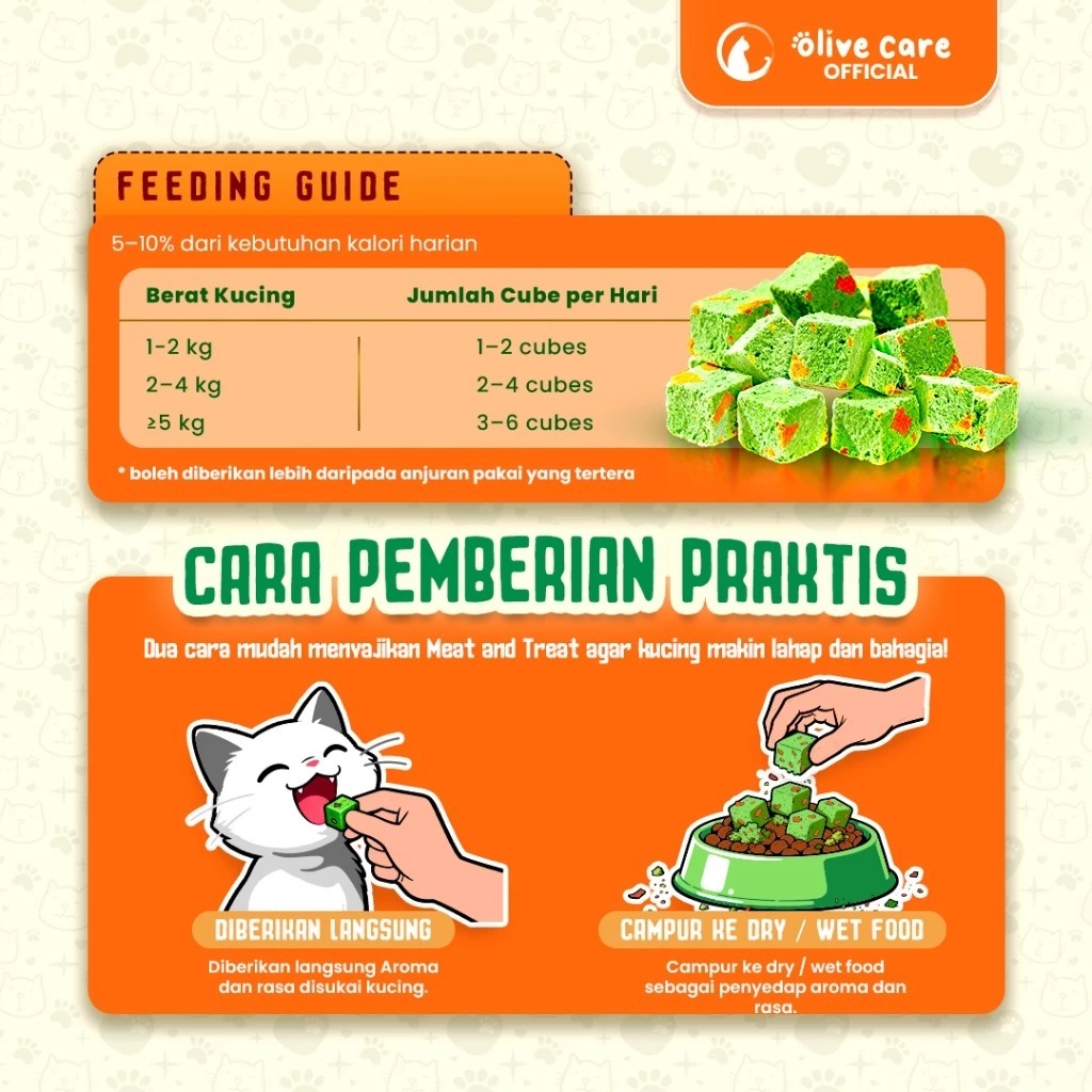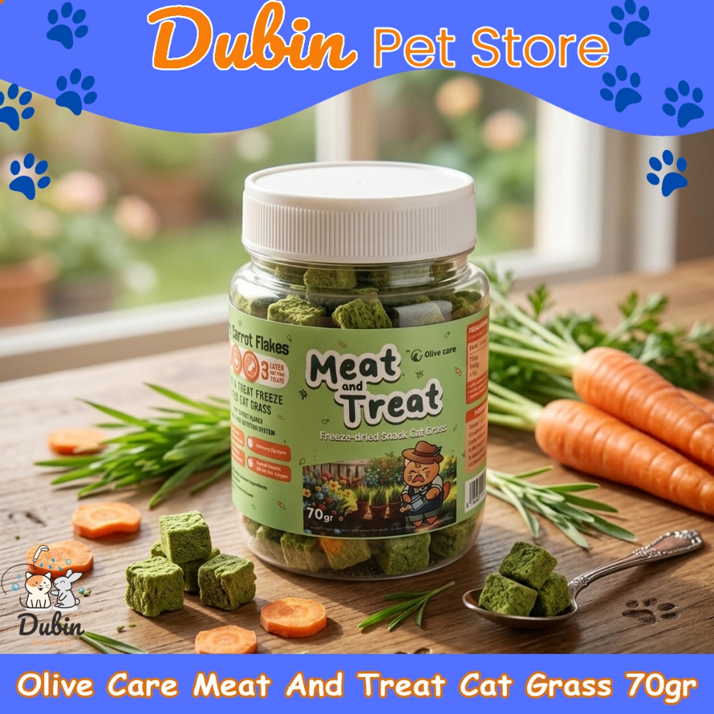 Olive Care MEAT & TREAT Cat Grass Cube Freeze Dried Snack Cemilan Kucing Tinggi Serat & Protein atasi Hairball Bulu Rontok 70 gram