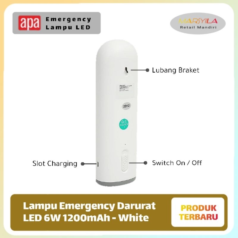 APA LAMPU EMERGENCY DARURAT LED 6W 1200MAH PUTIH | EMERGENCY LAMP PORTABEL LED APA