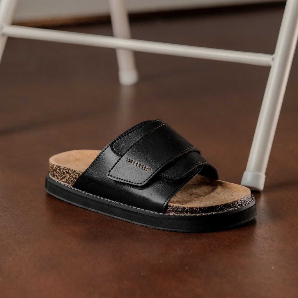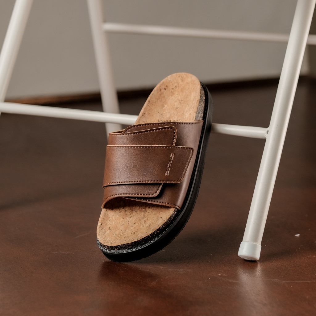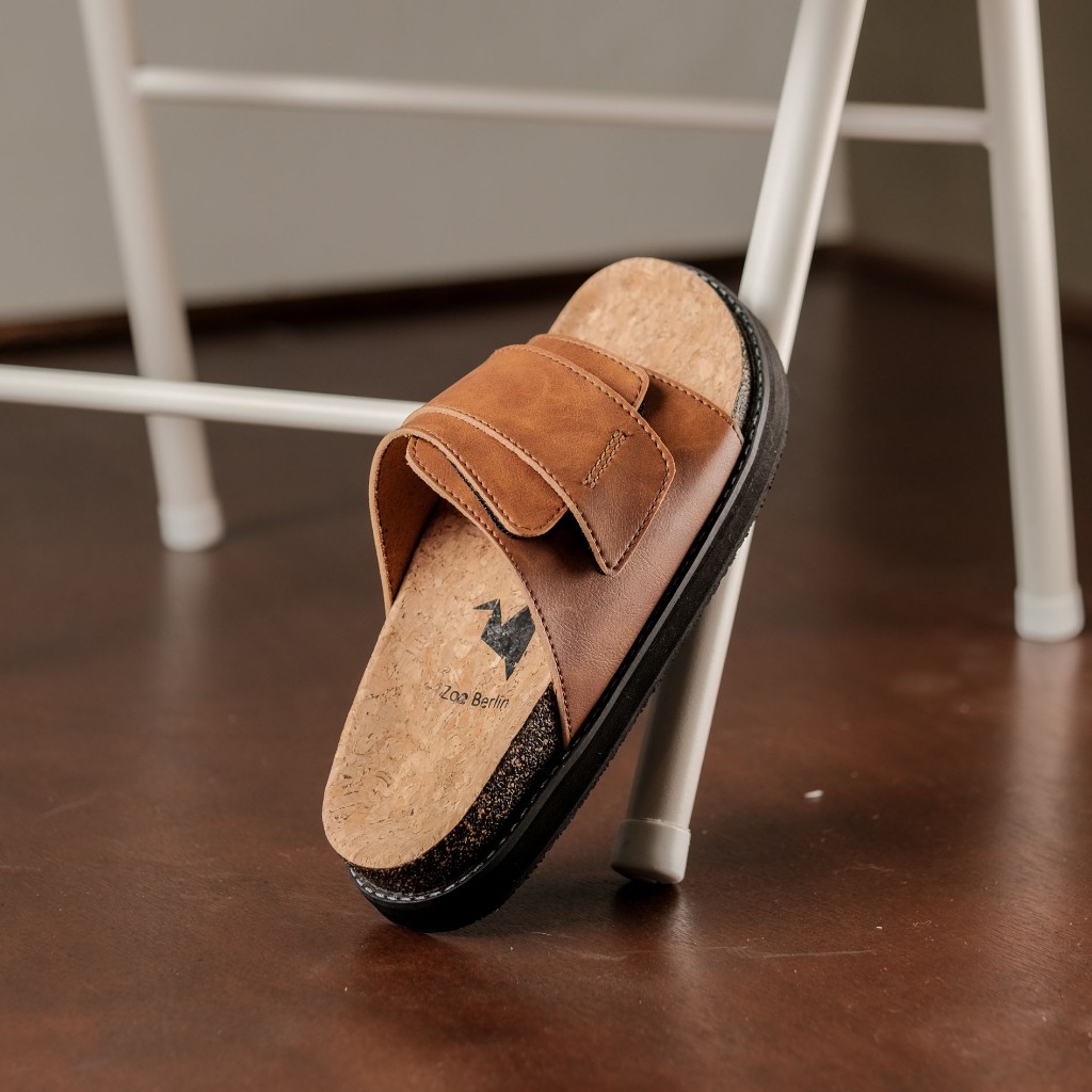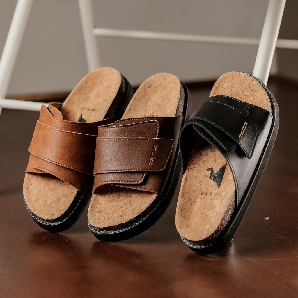 Sandal Slides Pria - Brussel Leather Series Zoe Berlin - Sendal Cork Puyuh Birken Slide Cowok