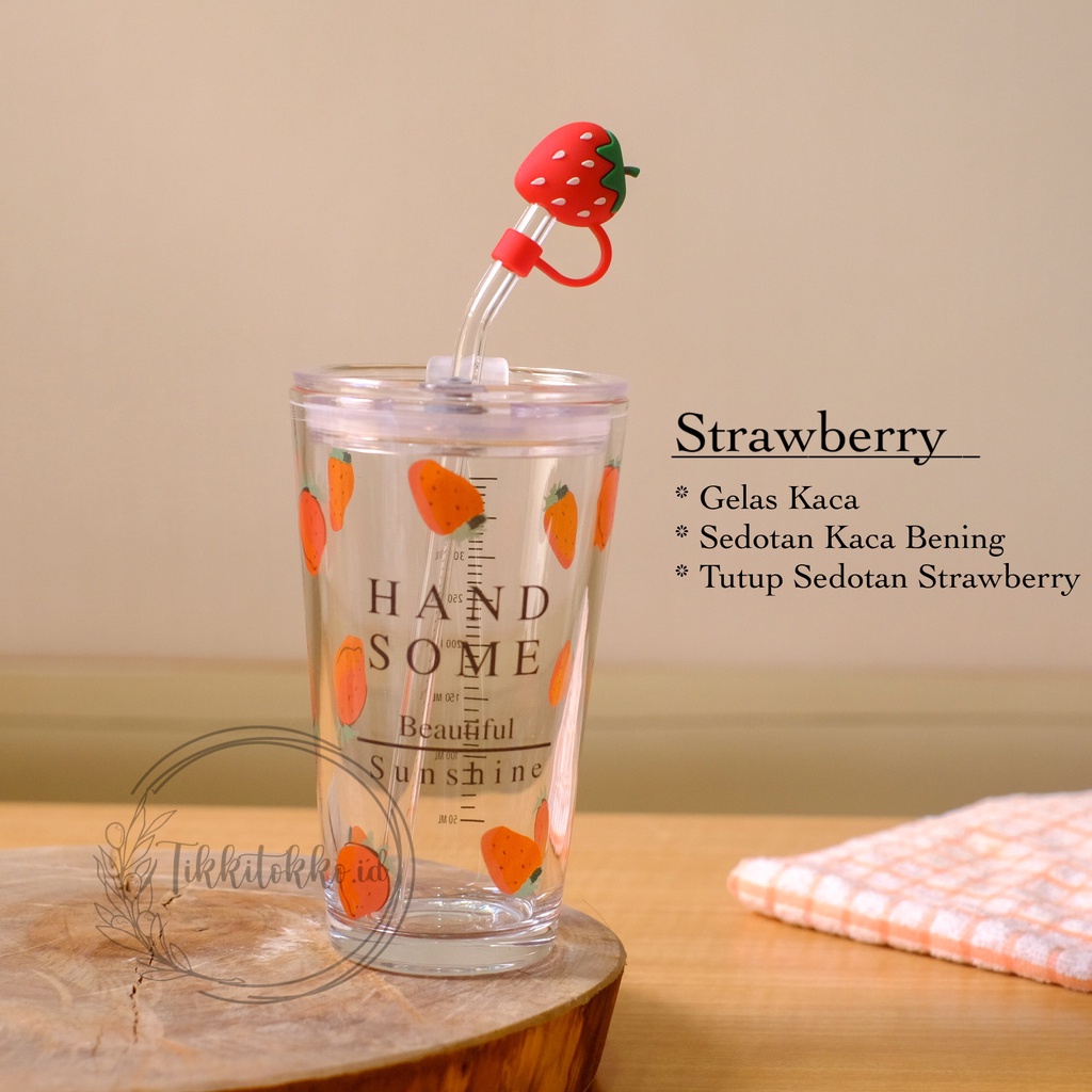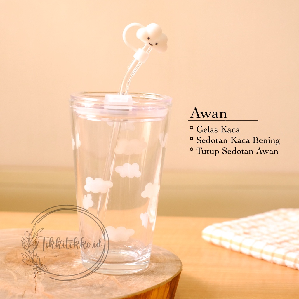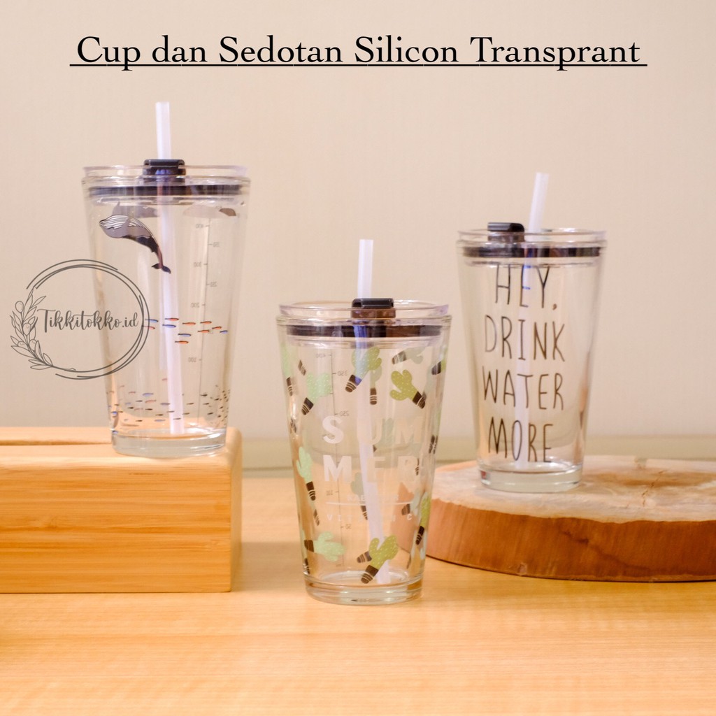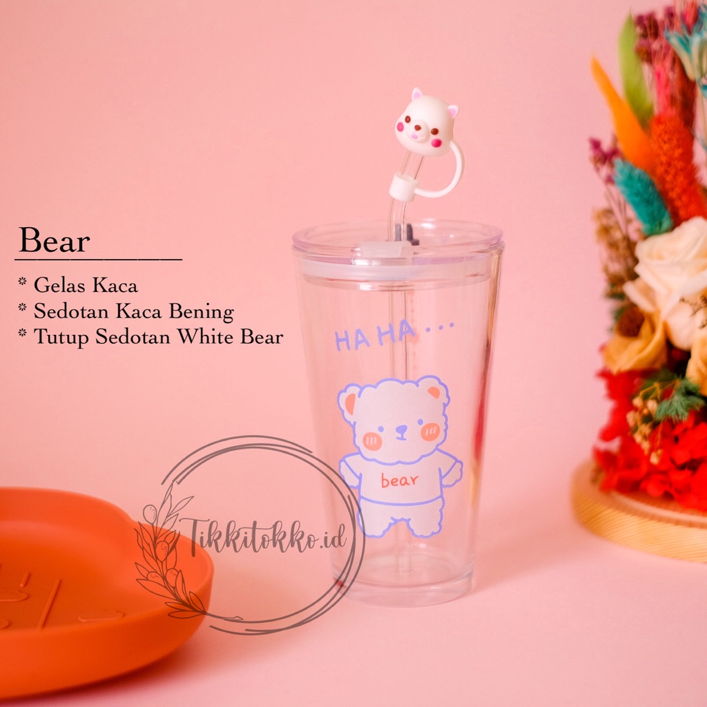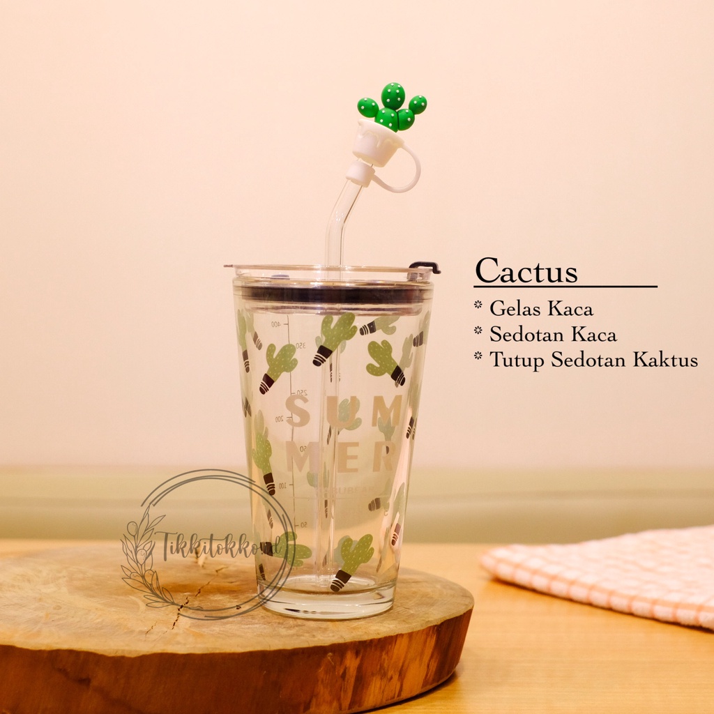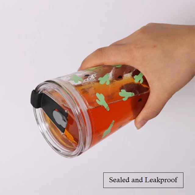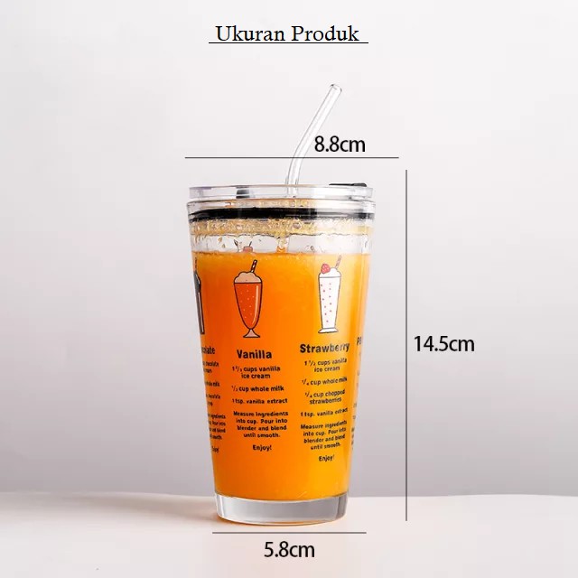 Gelas Tumblr Kaca Bening Gelas Mug Gelas Kaca dengan Tutup Anti Bocor 450ml Botol Minum Kaca Gratis Sedotan