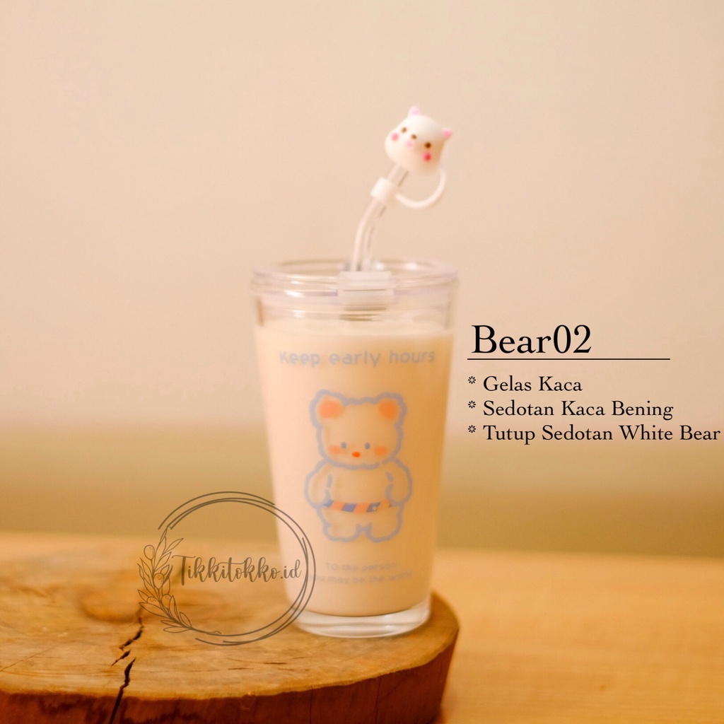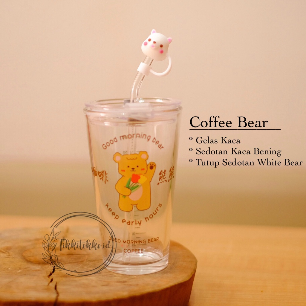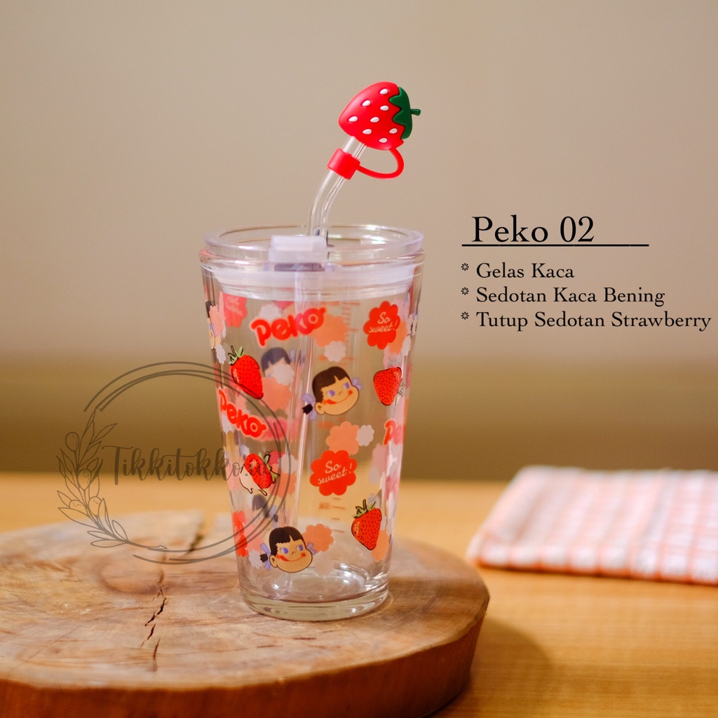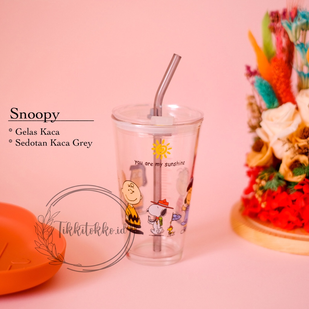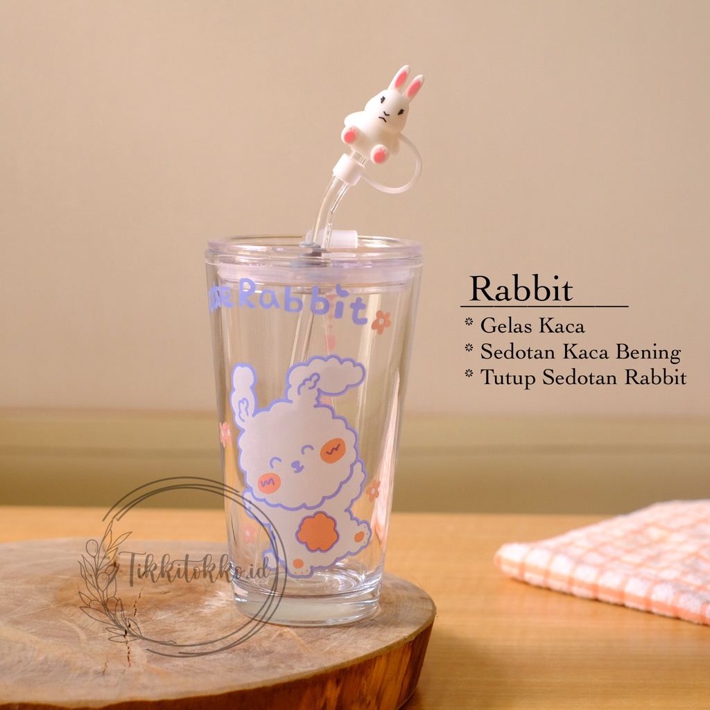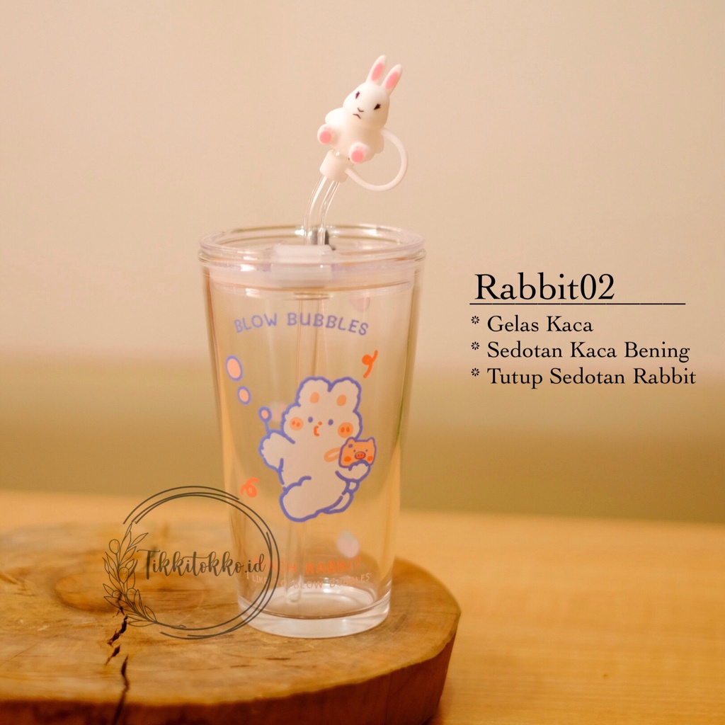 Gelas Tumblr Kaca Bening Gelas Mug Gelas Kaca dengan Tutup Anti Bocor 450ml Botol Minum Kaca Gratis Sedotan