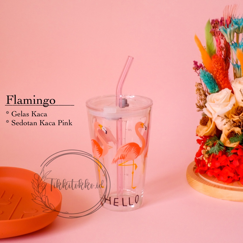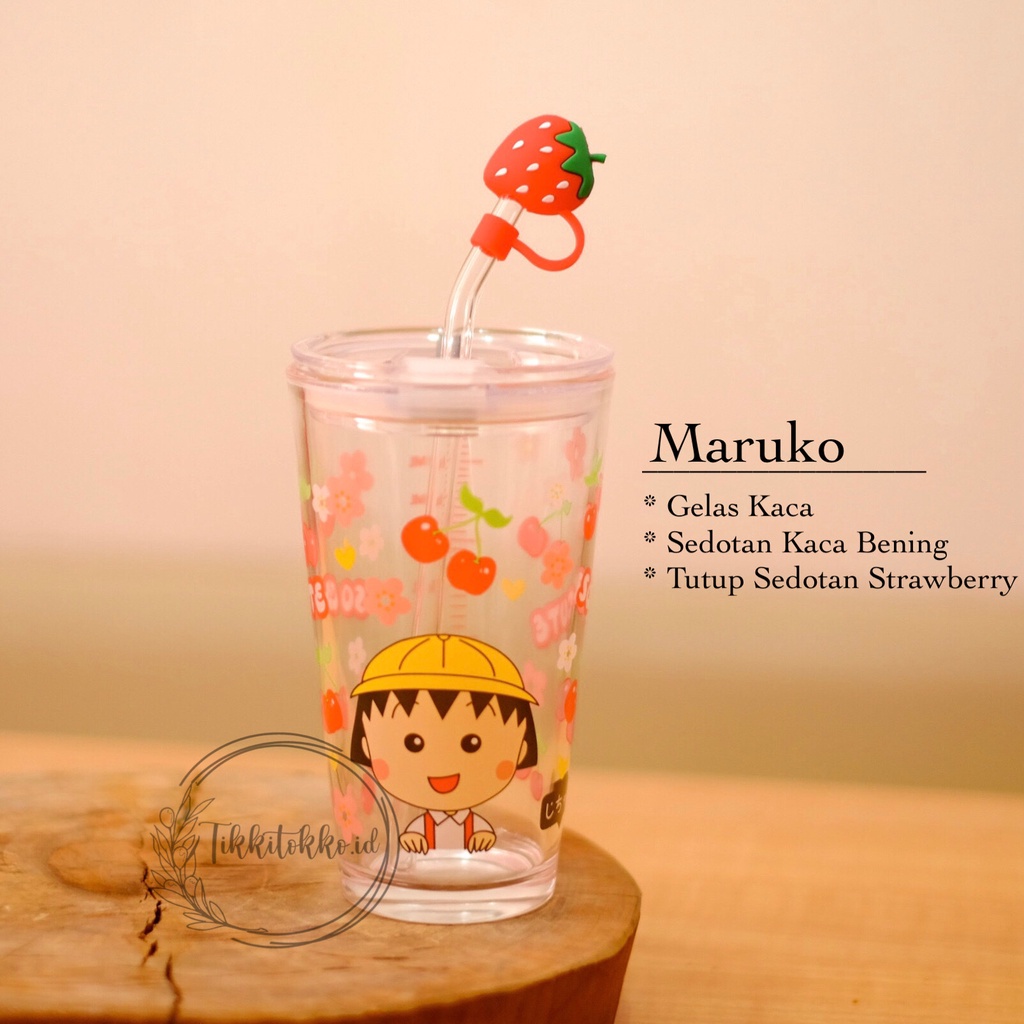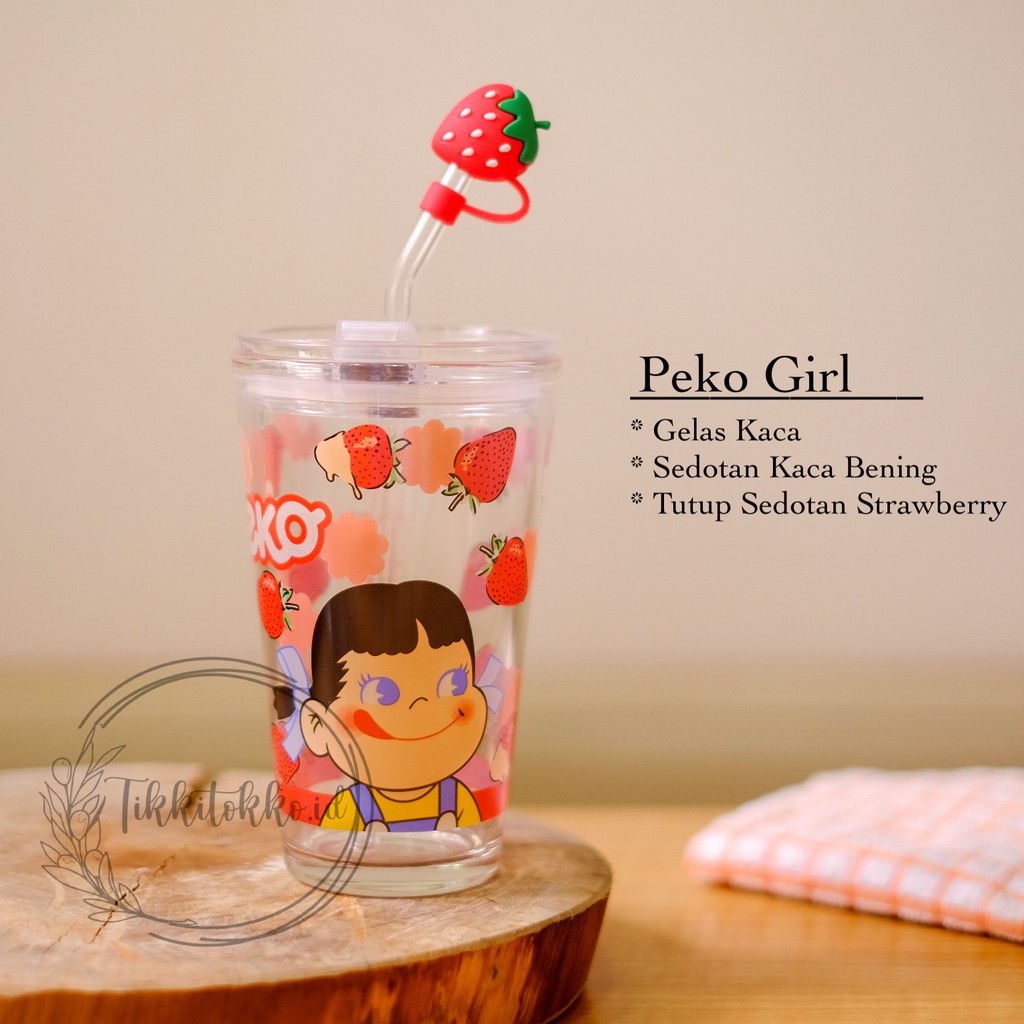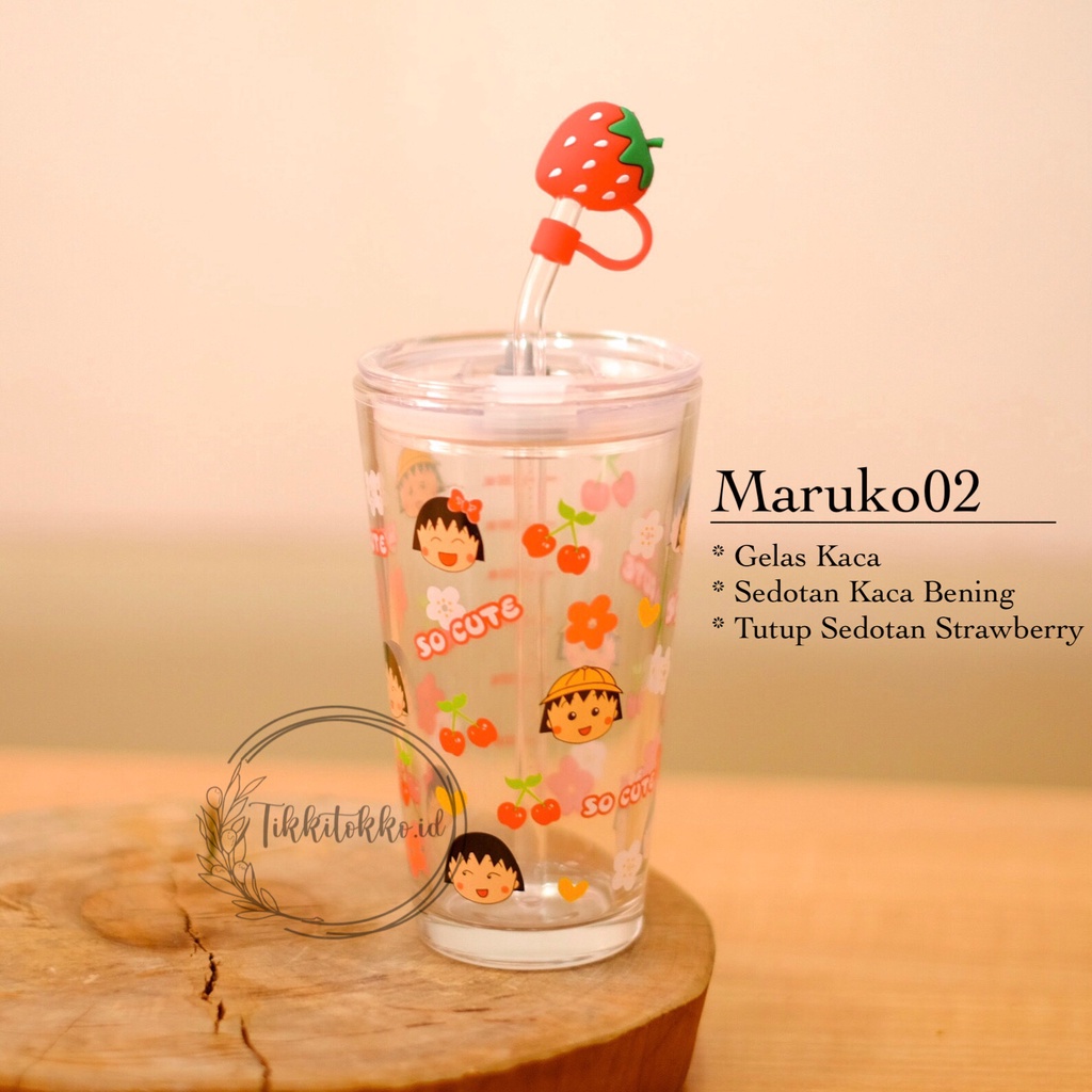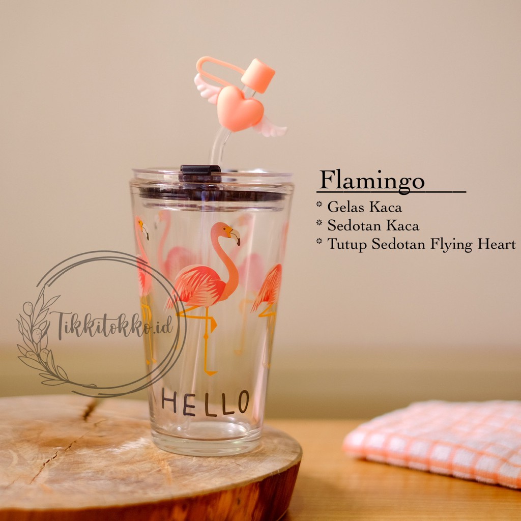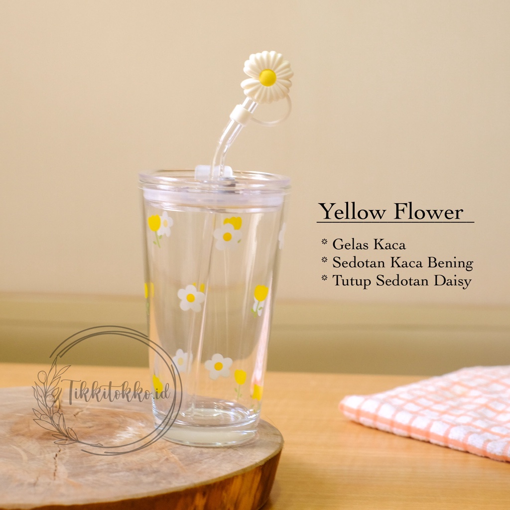 Gelas Tumblr Kaca Bening Gelas Mug Gelas Kaca dengan Tutup Anti Bocor 450ml Botol Minum Kaca Gratis Sedotan