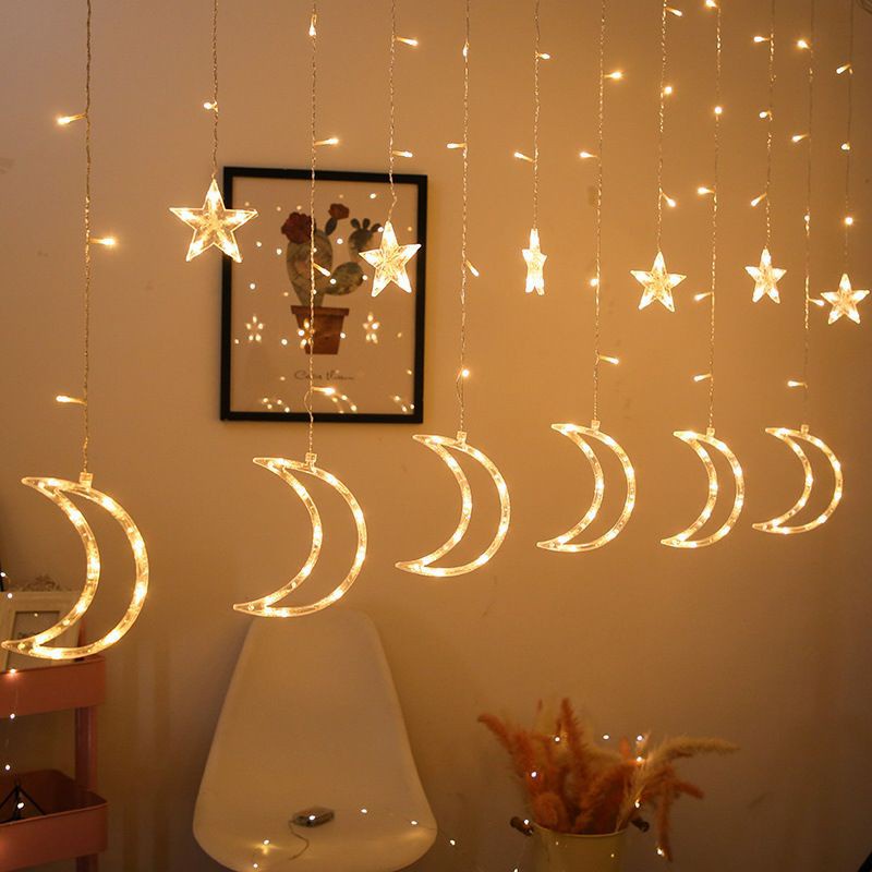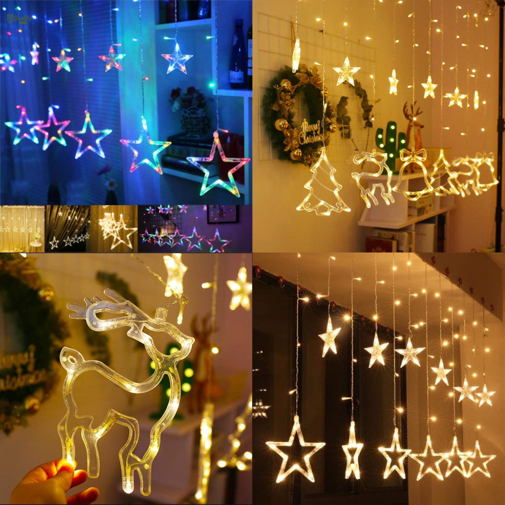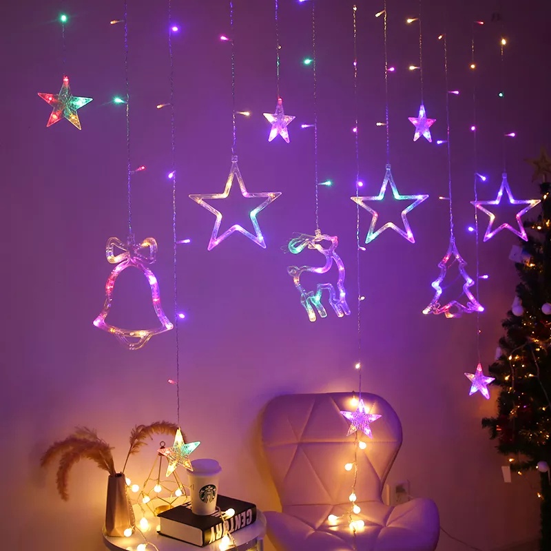 Lampu Bintang Besar Salju Anggur Bintang Kecil Lampu Tirai Dekorasi Tumblr 2,5m Star LED Lampu Natal