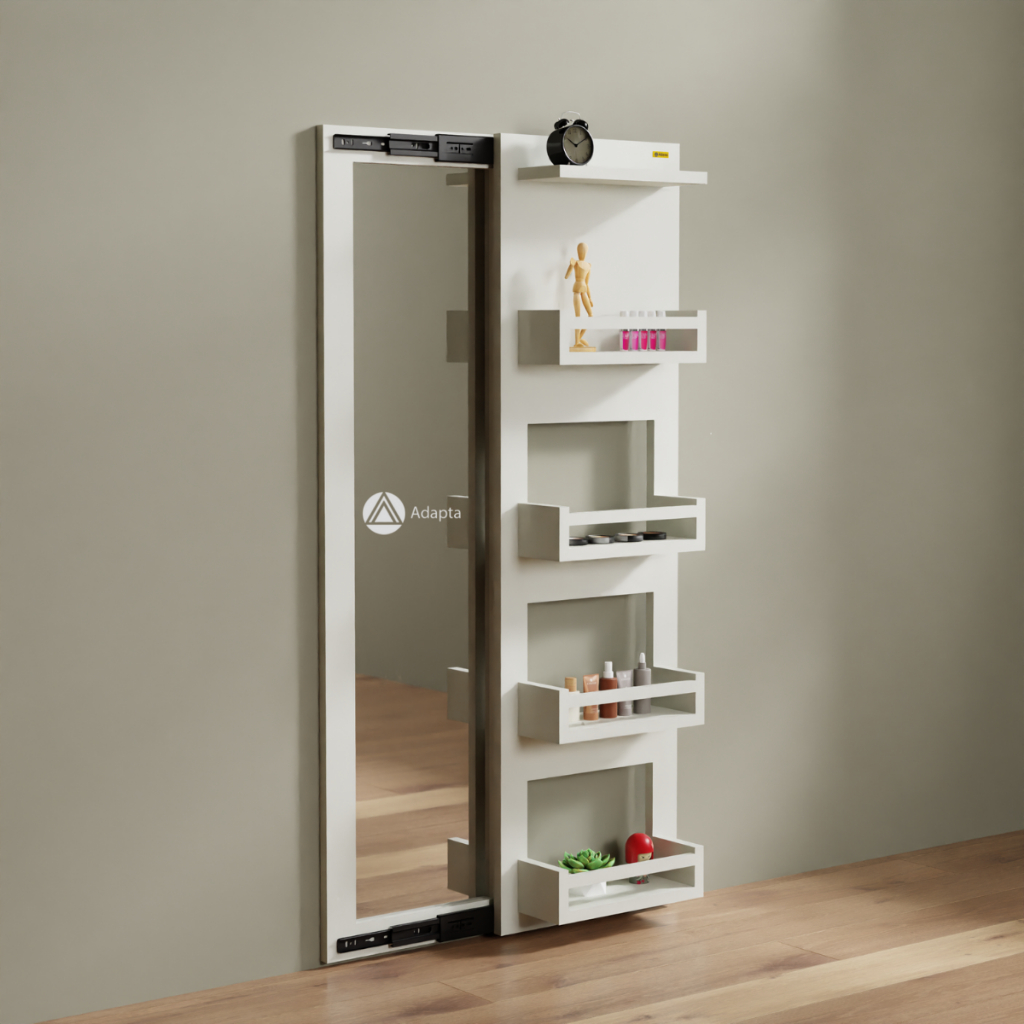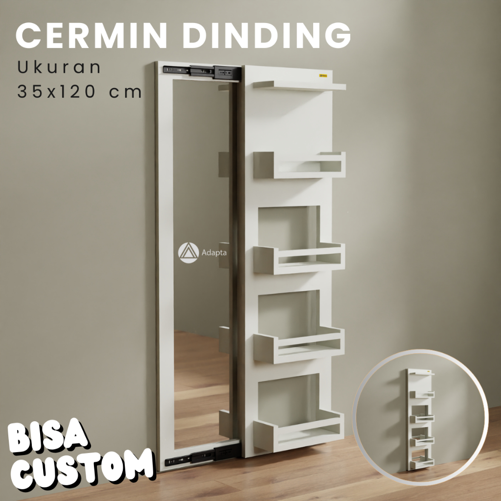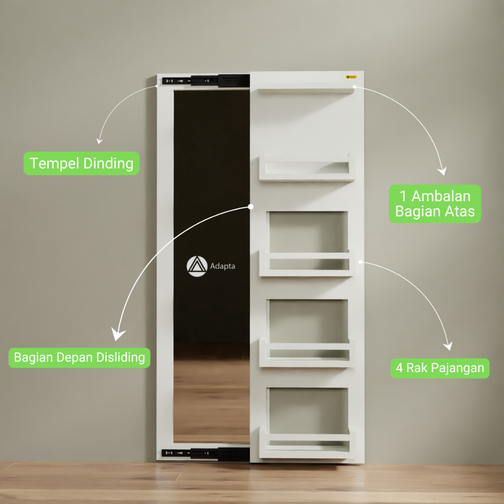 Adapta - Cermin Tempel Dinding Sliding Rak 4 Susun dan 1 Ambalan Atas Uk.35x120 cm - CELIN - A138