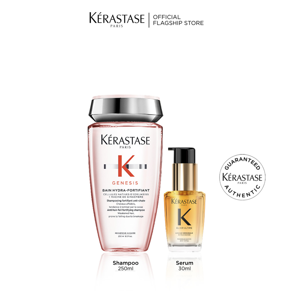 Kerastase Anti Hair Fall Shampoo & Elixir Ultime Mini - Bain Hydra Genesis Shampoo 250ml Shampoo untuk Rambut Rontok & Elixir Ultime 30ml Serum Rambut