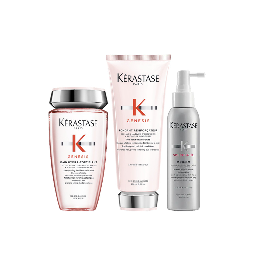 Kerastase Anti Hair Loss Set - Bain Hydra Genesis Shampoo 250ml, Fondant Renforcateur Kondisioner Rambut Rontok & Patah 200ml, Stimuliste 125ml Anti Hair Loss Serum